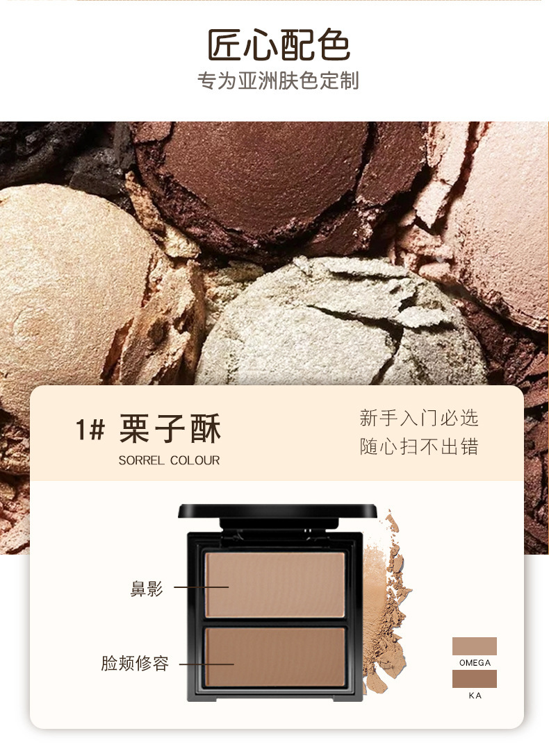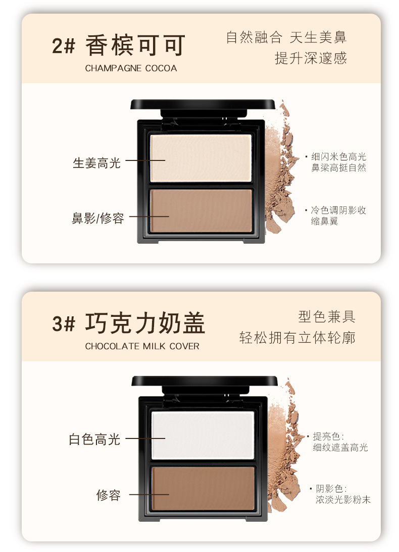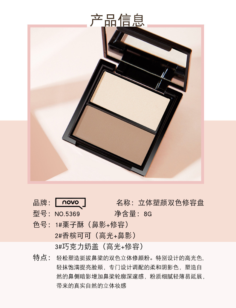 NOVO5369 스테레오 조각 더블 컬러 고정 플레이트 더블 컬러 고정 파우더 케이크 그림자 비강 그림자 하이라이트 고정 플레이트