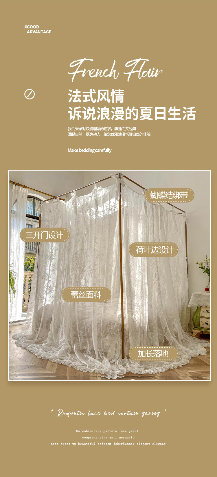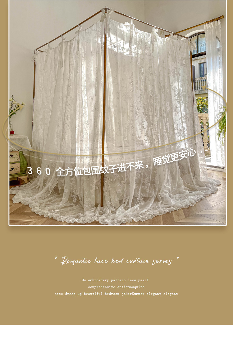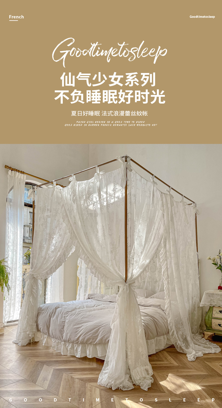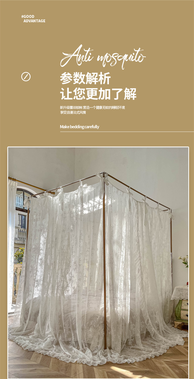 2023 뉴 프린세스 윈드 팰리스 모기장 3 도어 바닥 방진 침대 커튼 1.8m 높이 프랑스 침대 커튼 모기장스토어 가기
