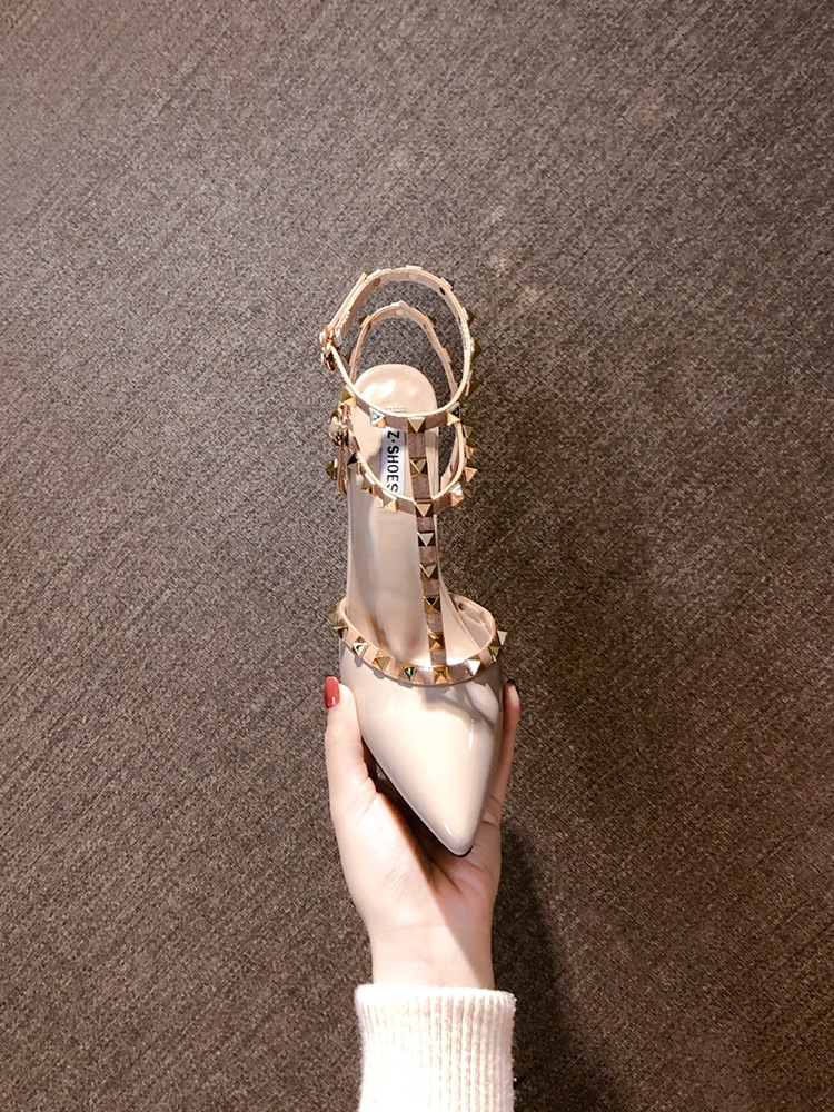 리벳 누드 하이힐 여성용 스틸레토 힐 2023 봄과 여름 새로운 뾰족한 패션 사이버 연예인 섹시 백 빈 여성 샌들