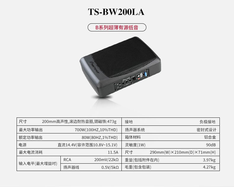 파이오니어 카 서브 우퍼 서브 우퍼 초박형 서브 우퍼 내장 파워 앰프 고출력 액티브 서브 우퍼 시트 건스토어 가기