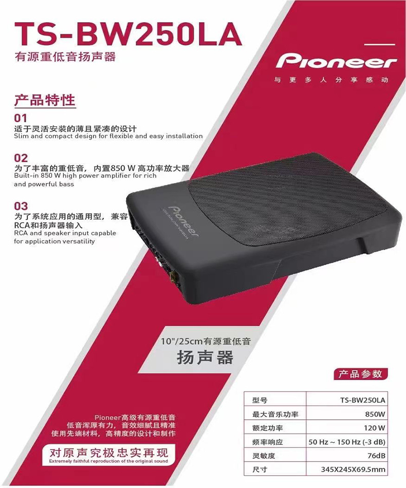 파이오니어 카 서브 우퍼 서브 우퍼 초박형 서브 우퍼 내장 파워 앰프 고출력 액티브 서브 우퍼 시트 건