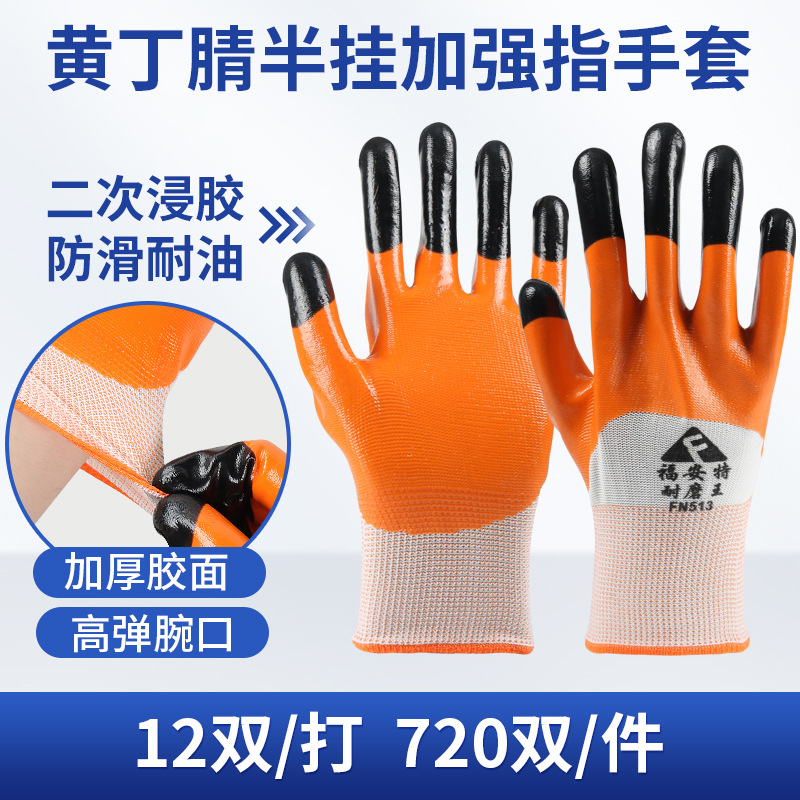 공장 도매 노동 보호 장갑 니트릴 세미 행잉 강화 손가락 내마모성 미끄럼 방지 디핑 접착제 교수형 접착제 사이트 보호 장갑스토어 가기