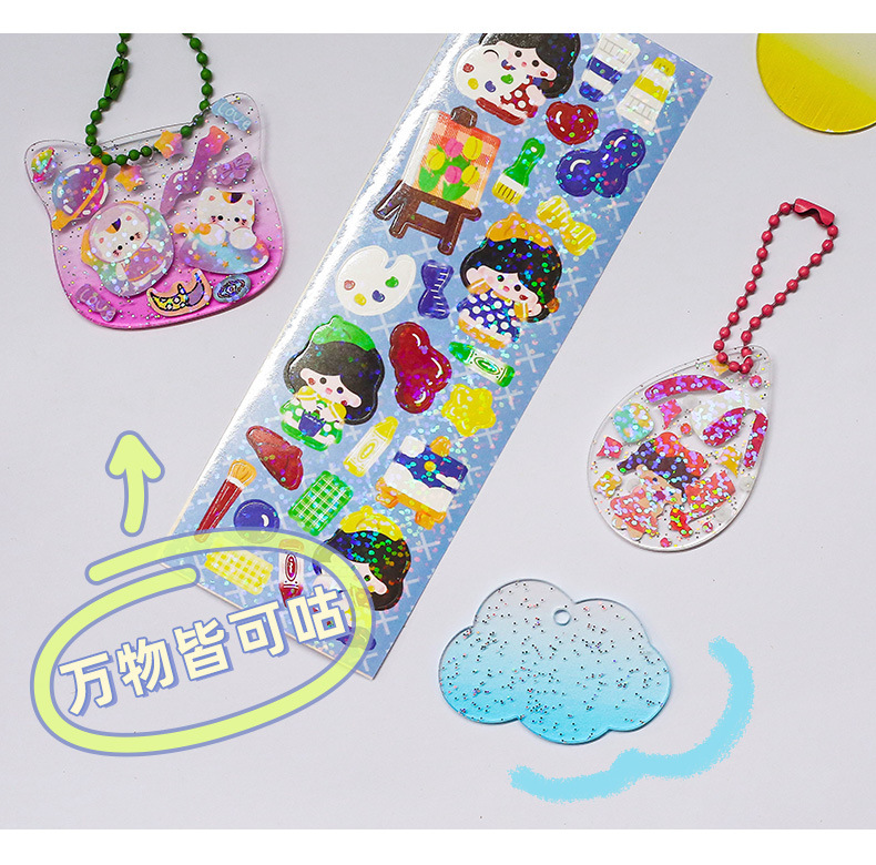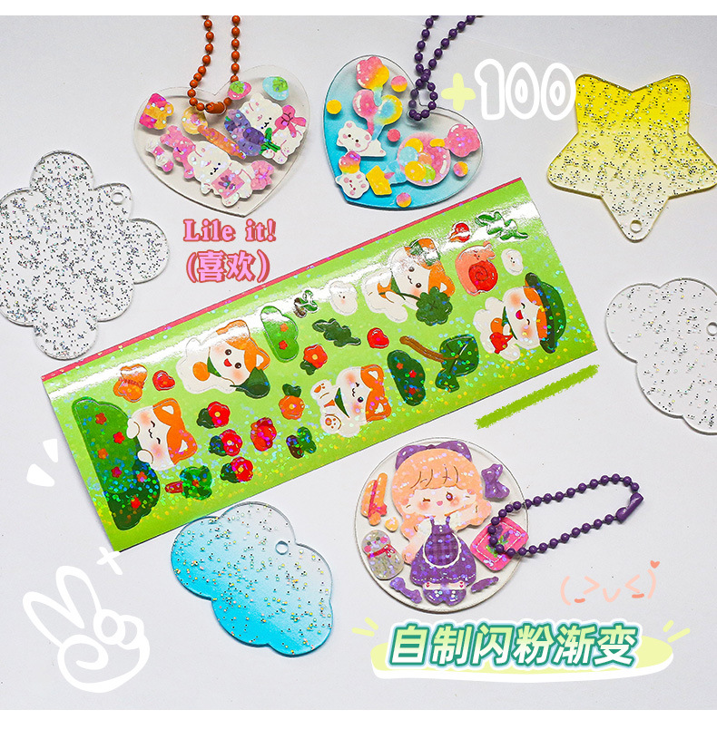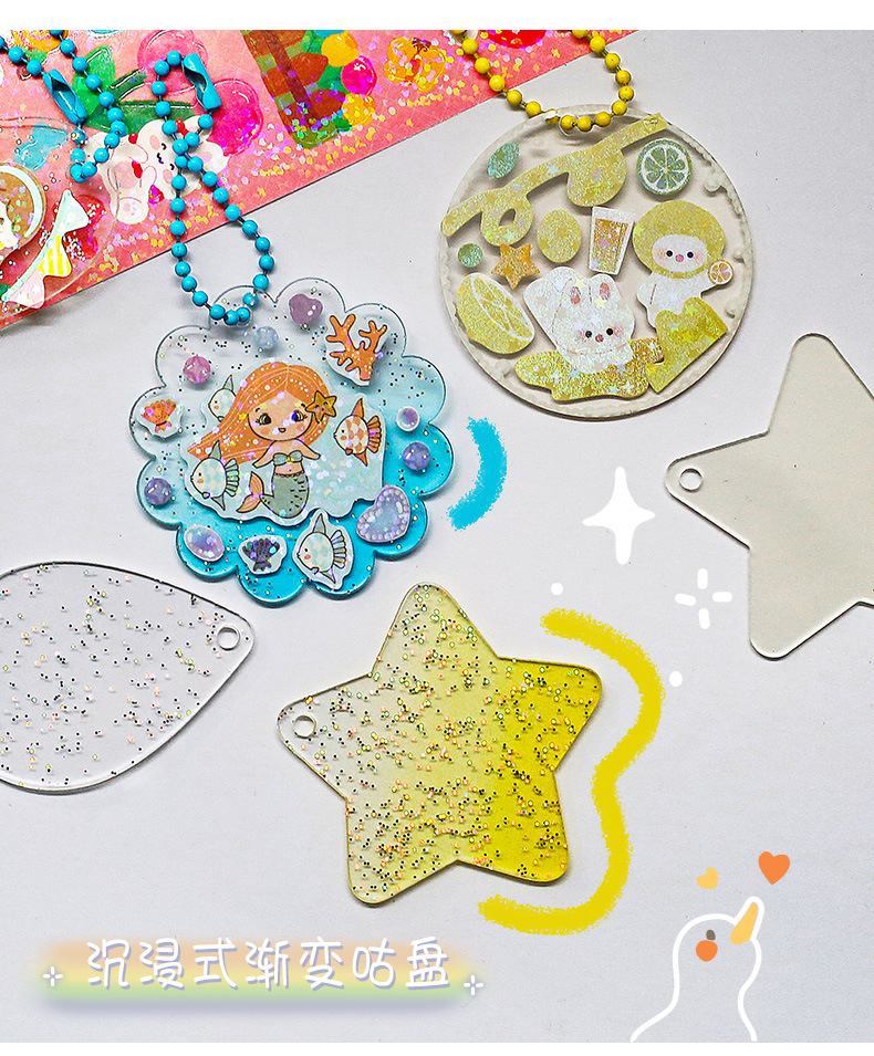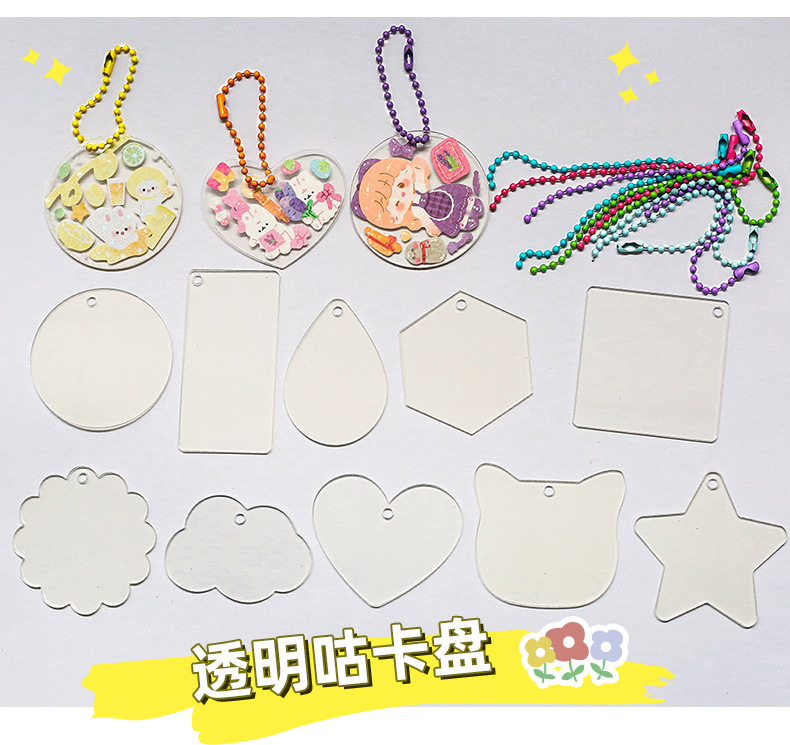 어린이 투명 디스크 DIY 작은 원형 디스크 작은 별 투명 아크릴 펜던트 핸드북 스티커 체인스토어 가기