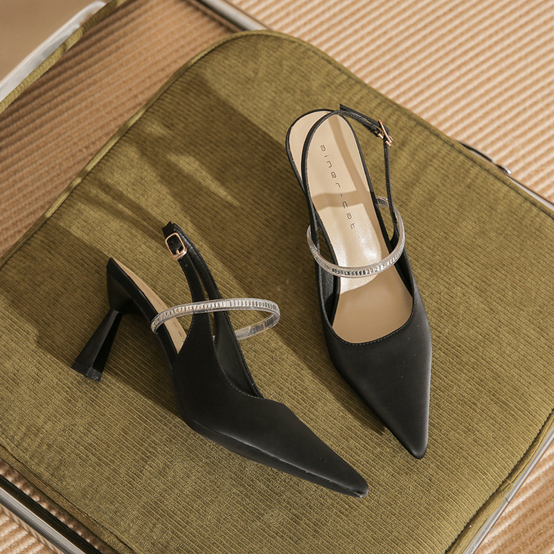 75711 [양가죽] 여성용 포인티드 토 하이힐 2025 여름 신작 바오터우 백 스트랩 샌들