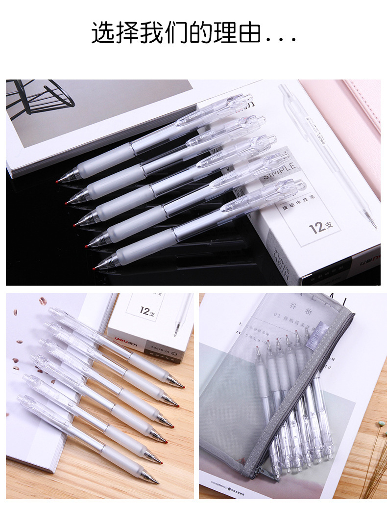 델리 투명 프레스 젤 펜 흑인 학생 시험을 위해 0.5mm 간단하고 신선한 미술 노트 사용