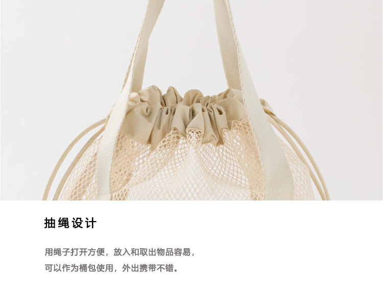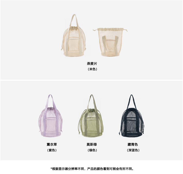여행용 수납 가방, 메쉬 중공 핸드백, 조임끈 포켓, 접이식 초경량 비치 백, 세면도구 가방, 국경 간스토어 가기