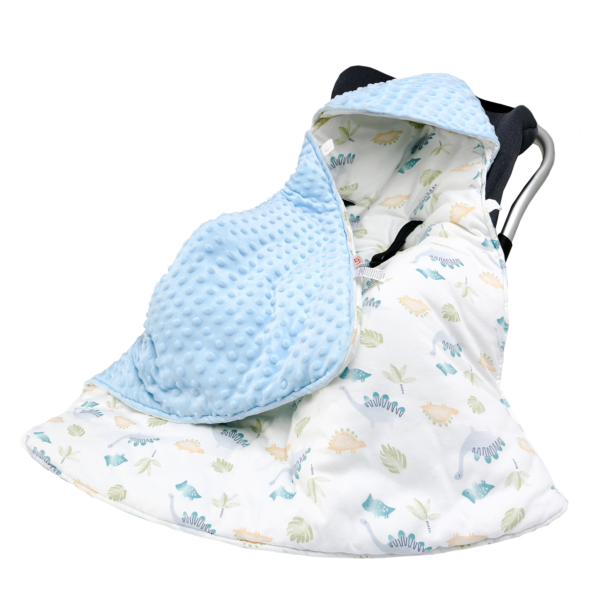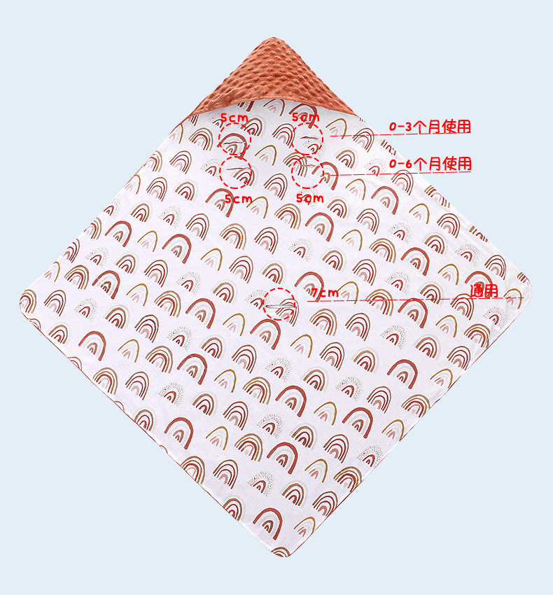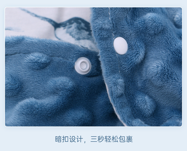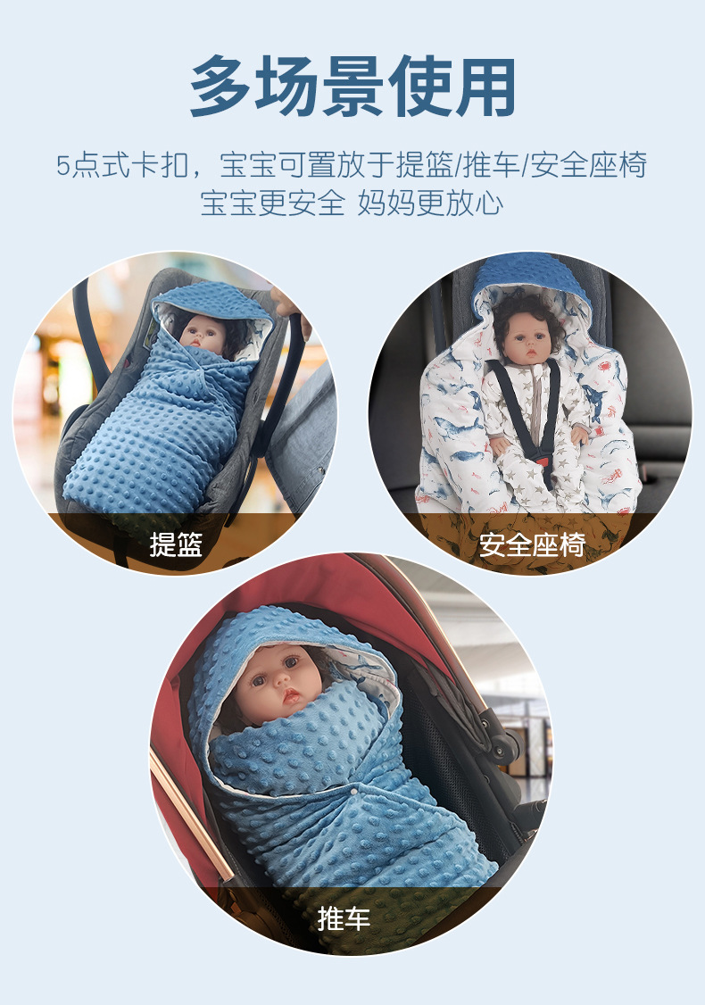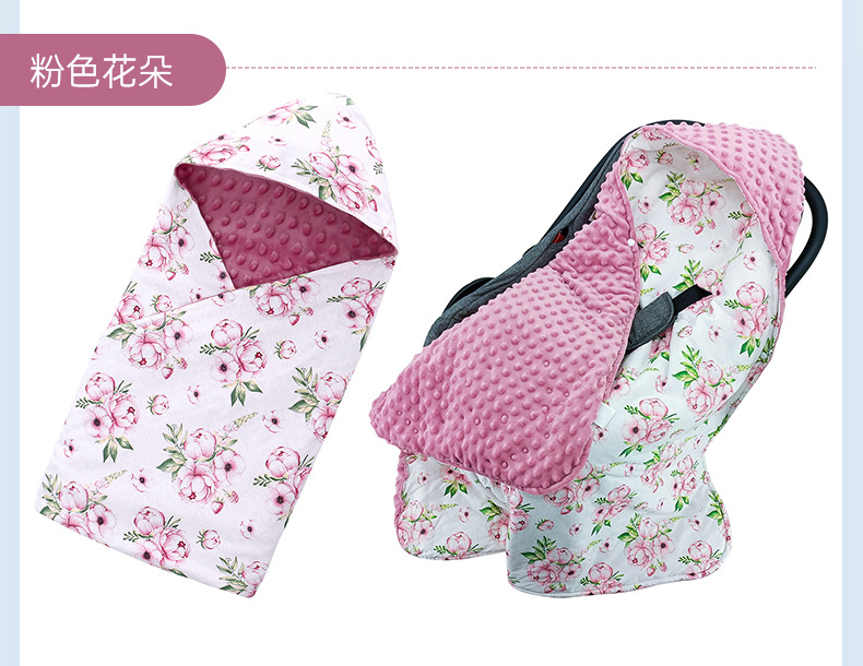 正反面都可以使用都一款婴儿包被,三角帽设计,室内室外均可使用,特色:有锁孔设计,在婴儿车或者安全座椅都可以固定,有双层以及夹棉2种款式均可挑选,非常柔软舒适