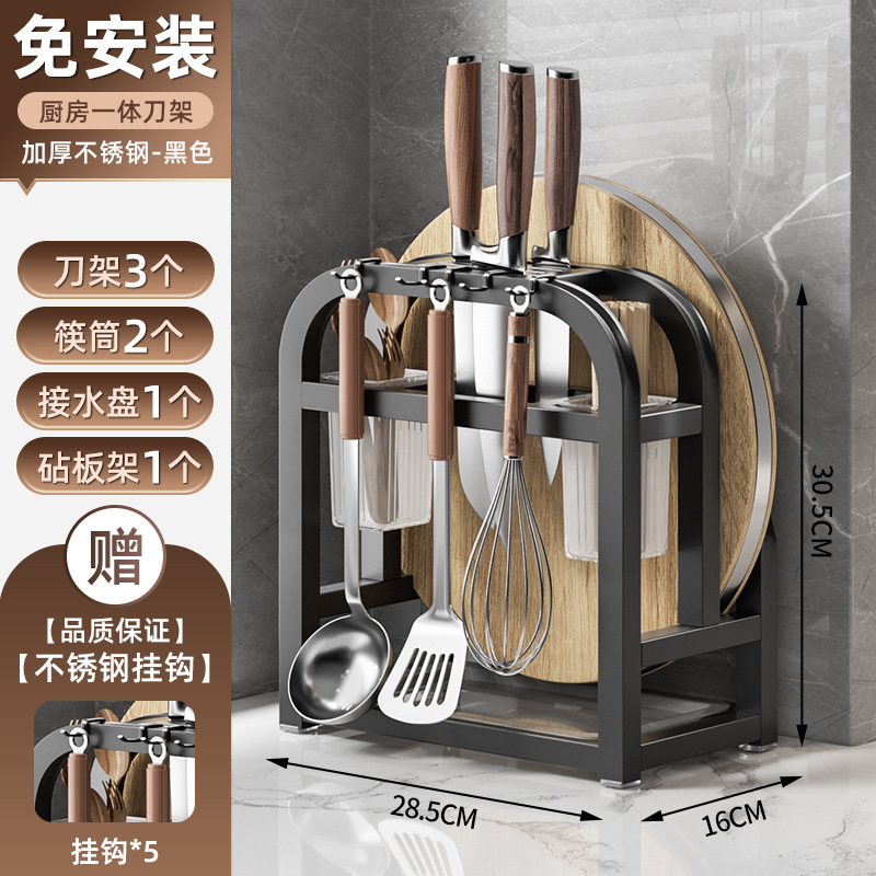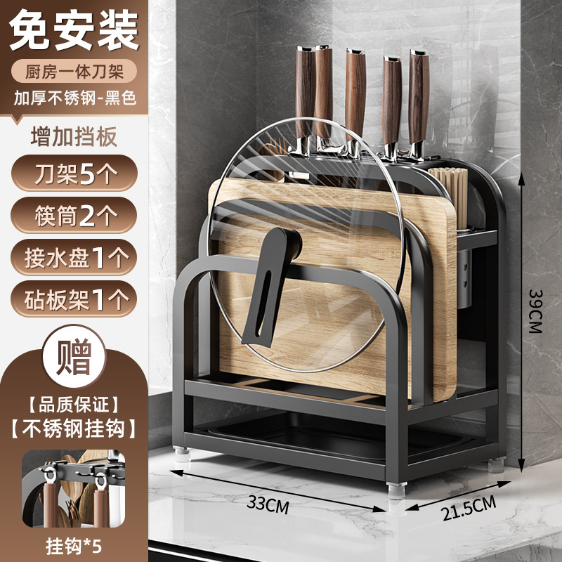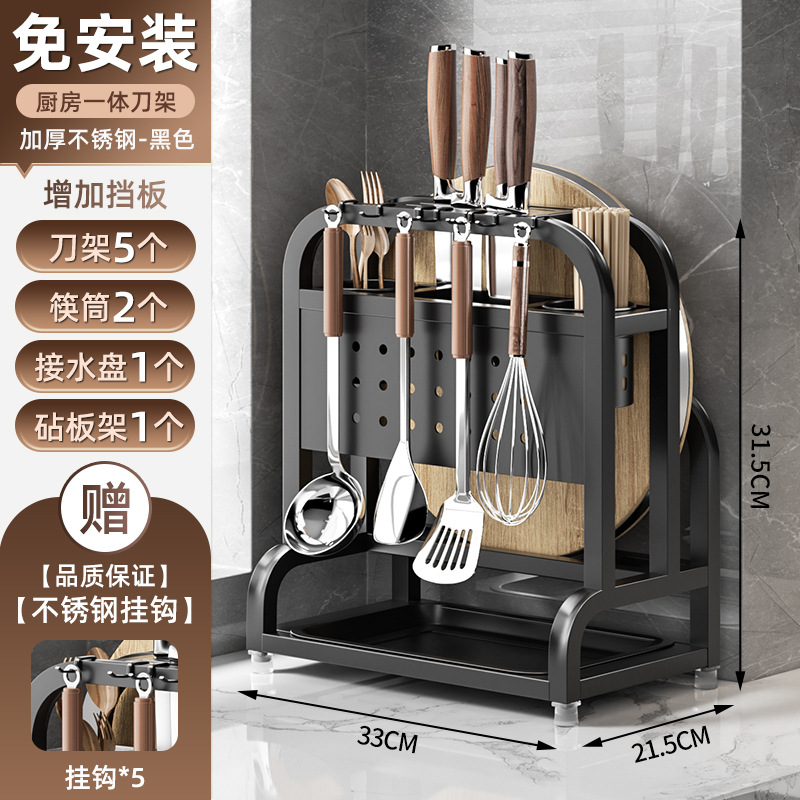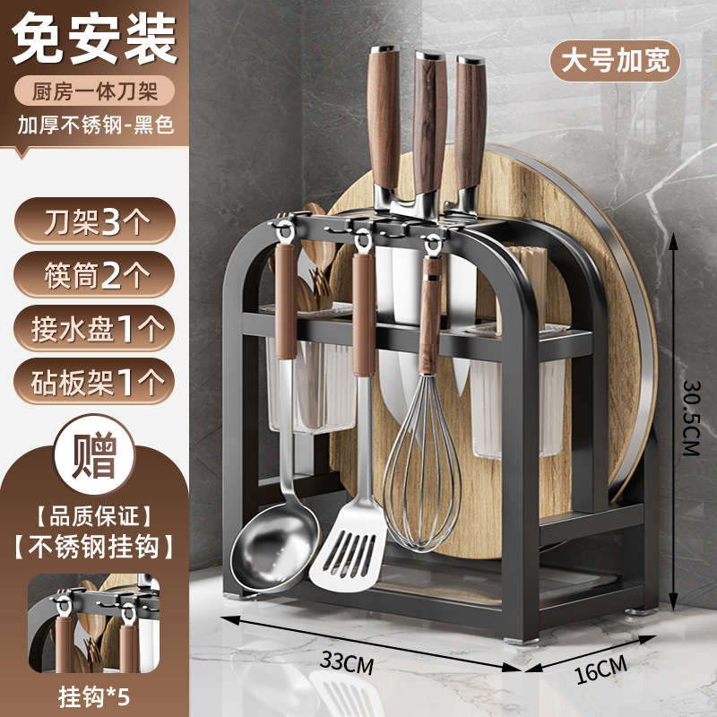 • 블랙 [두꺼운 스테인리스] 플래그십 대 (나이프 가드 보드 + 더블 젓가락 홀더 + 도마 랙 + 냄비 커버 랙)
