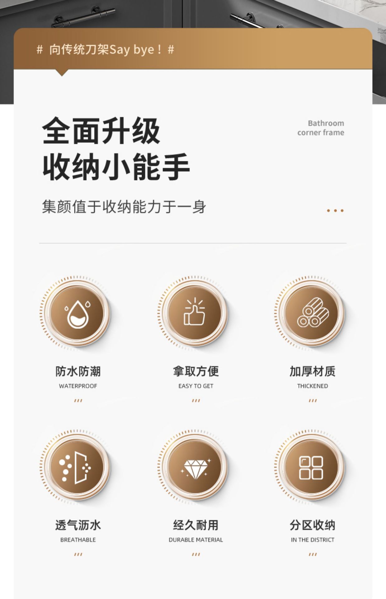 • [두꺼운 스테인리스 스틸] 플래그십 미디엄 (나이프 가드 + 더블 젓가락 홀더 + 도마 랙 + 냄비 커버 랙)