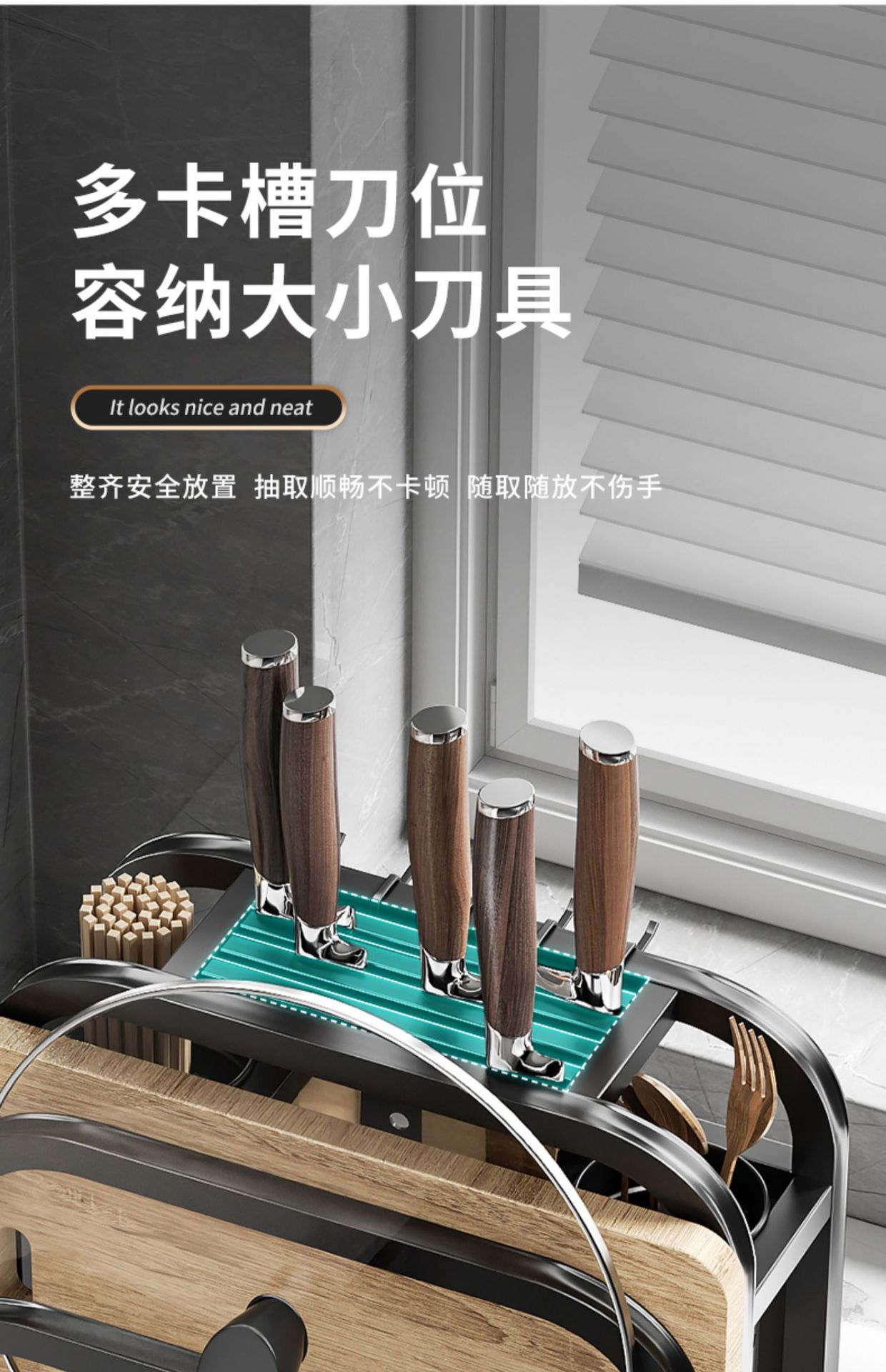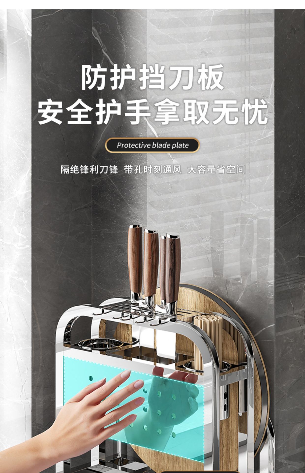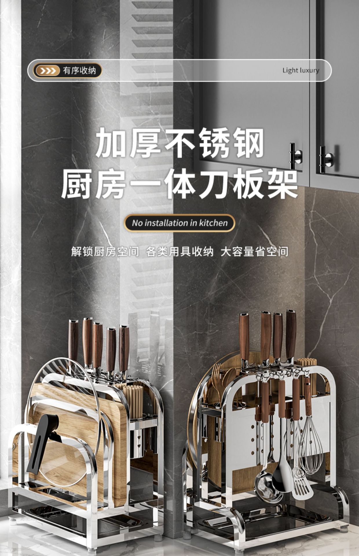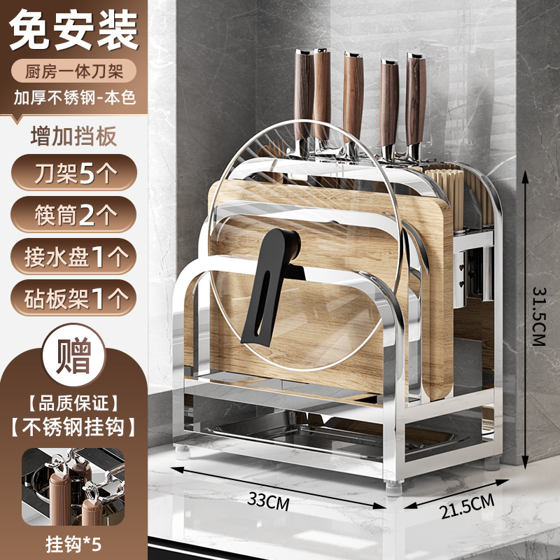 • [두꺼운 스테인리스 스틸] 플래그십 대형 (나이프 가드 + 더블 젓가락 홀더 + 도마 랙 + 냄비 커버 랙)