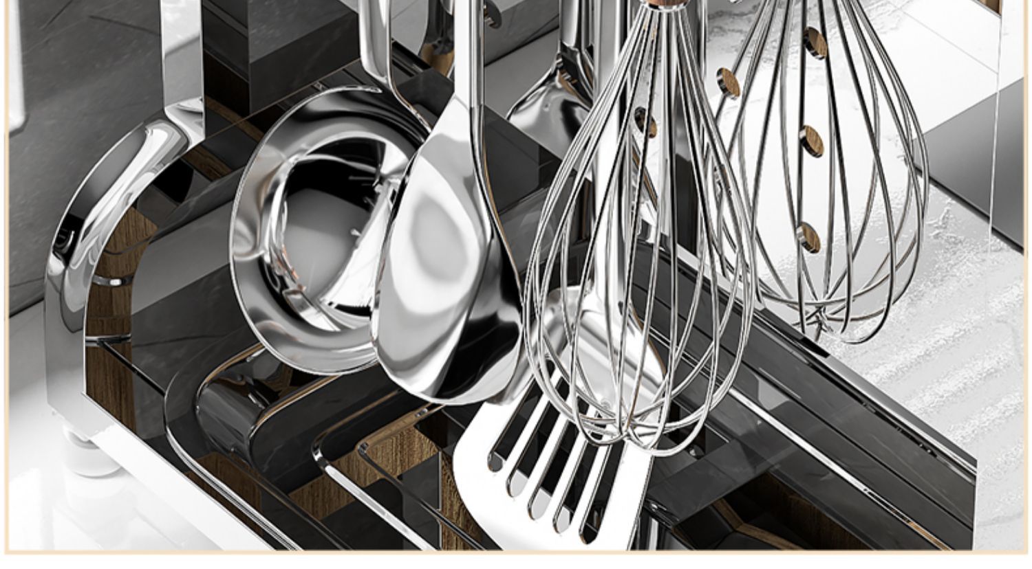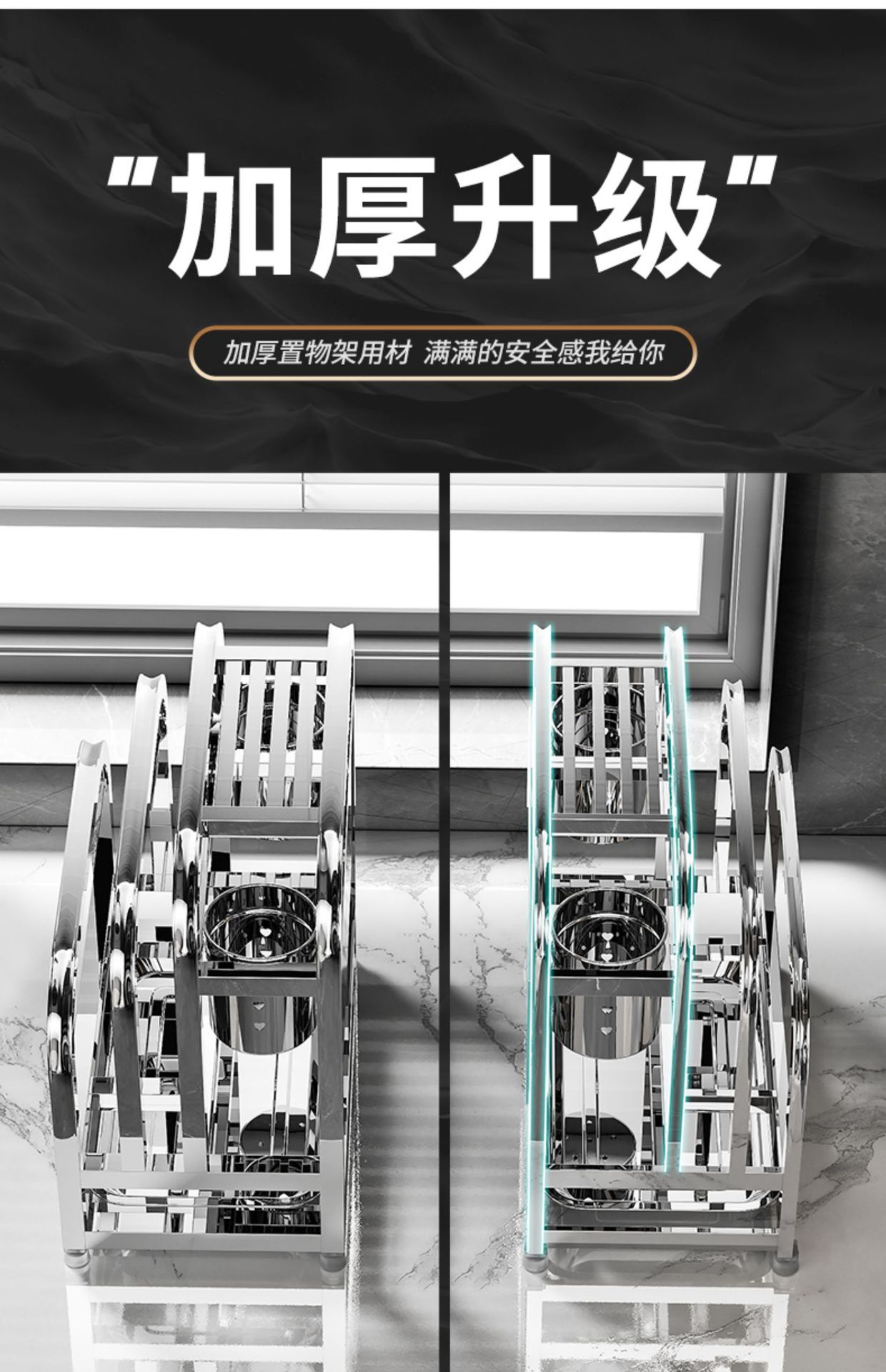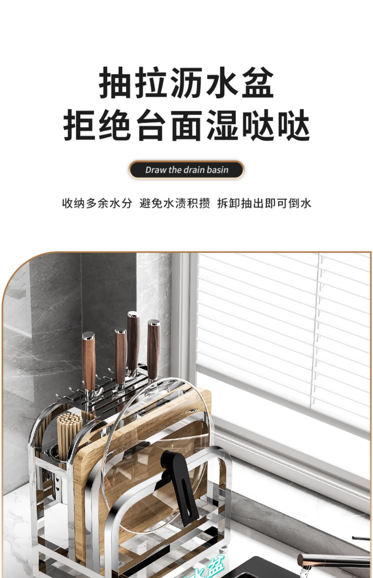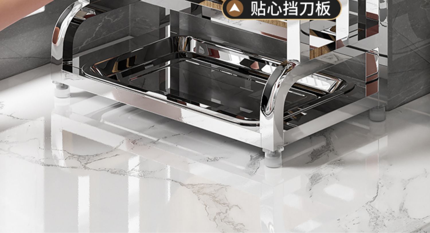 • [두꺼운 스테인리스 스틸] 플래그십 대형 (나이프 가드 + 더블 젓가락 홀더 + 도마 랙 + 냄비 커버 랙)