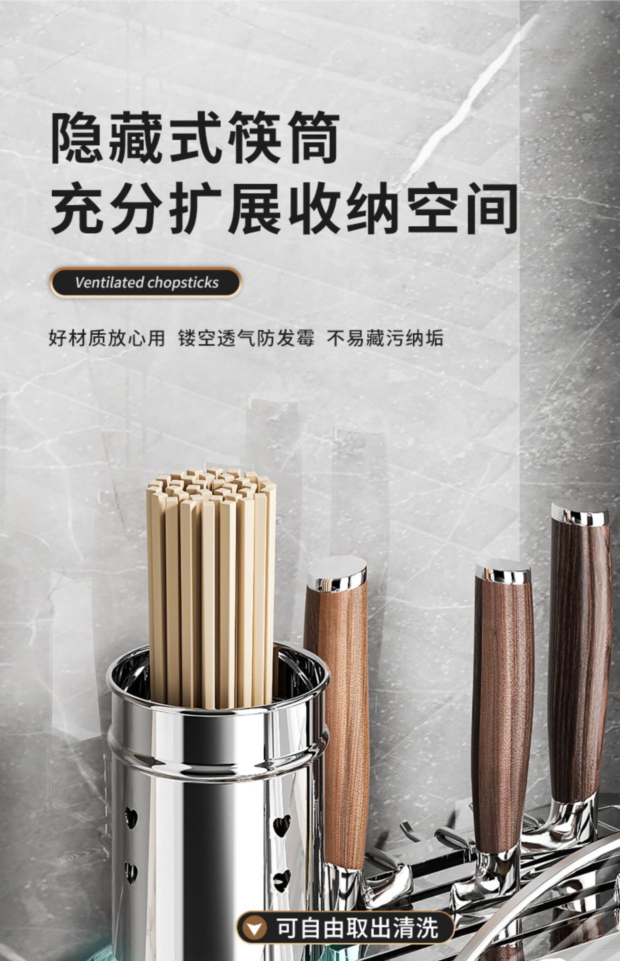• [두꺼운 스테인리스 스틸] 업그레이드된 대형 (나이프 가드 + 이중 젓가락 홀더 + 도마 랙)