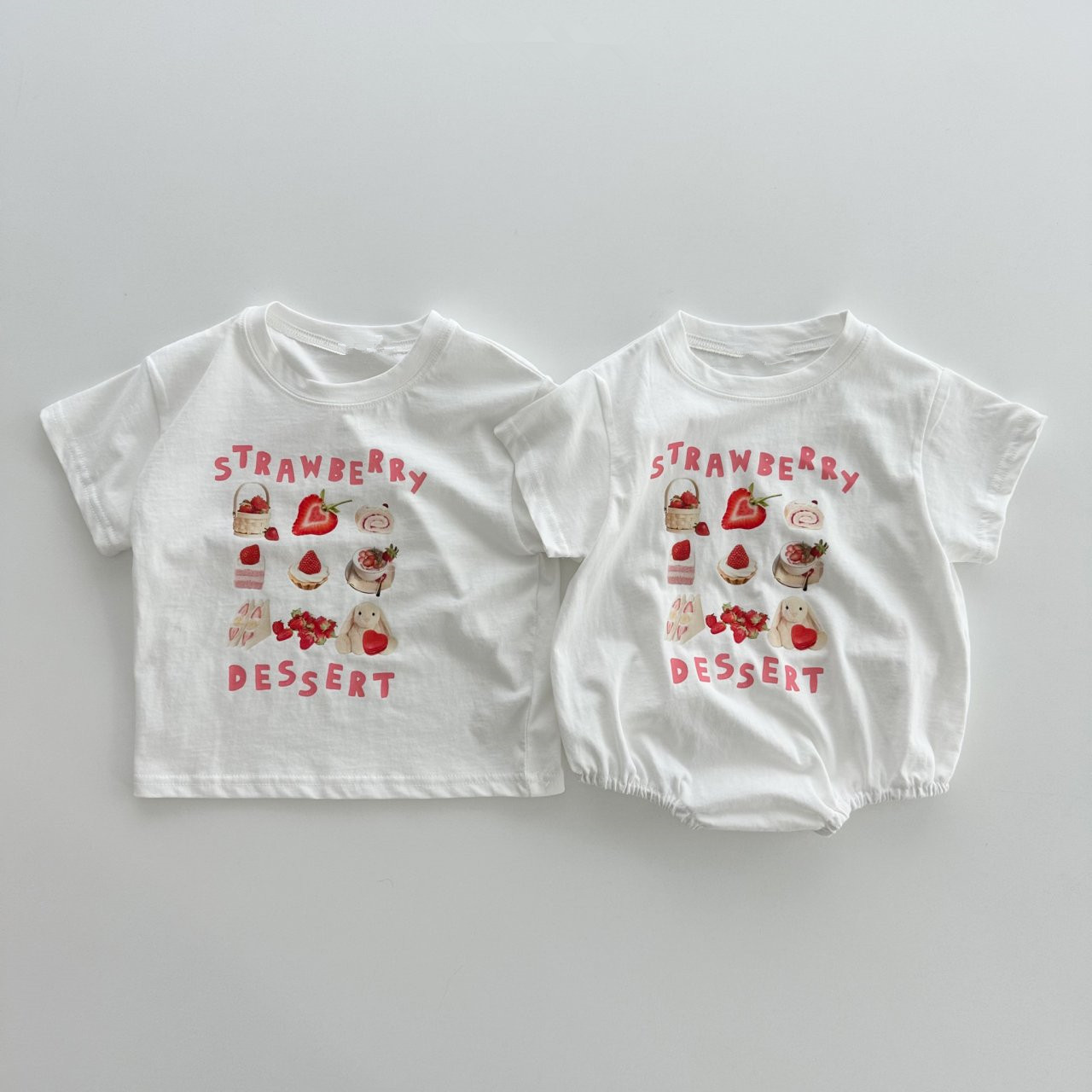 한국식 신생아 프린트 모든 매치 퓨어 코튼 점프 슈트 등산복 소년과 소녀를위한 트렌디 퓨어 코튼 캐주얼 티셔츠
