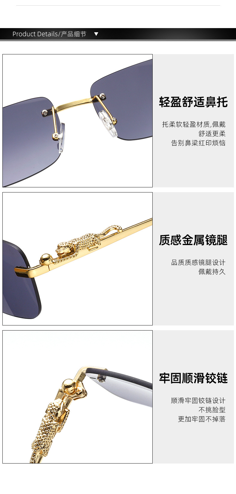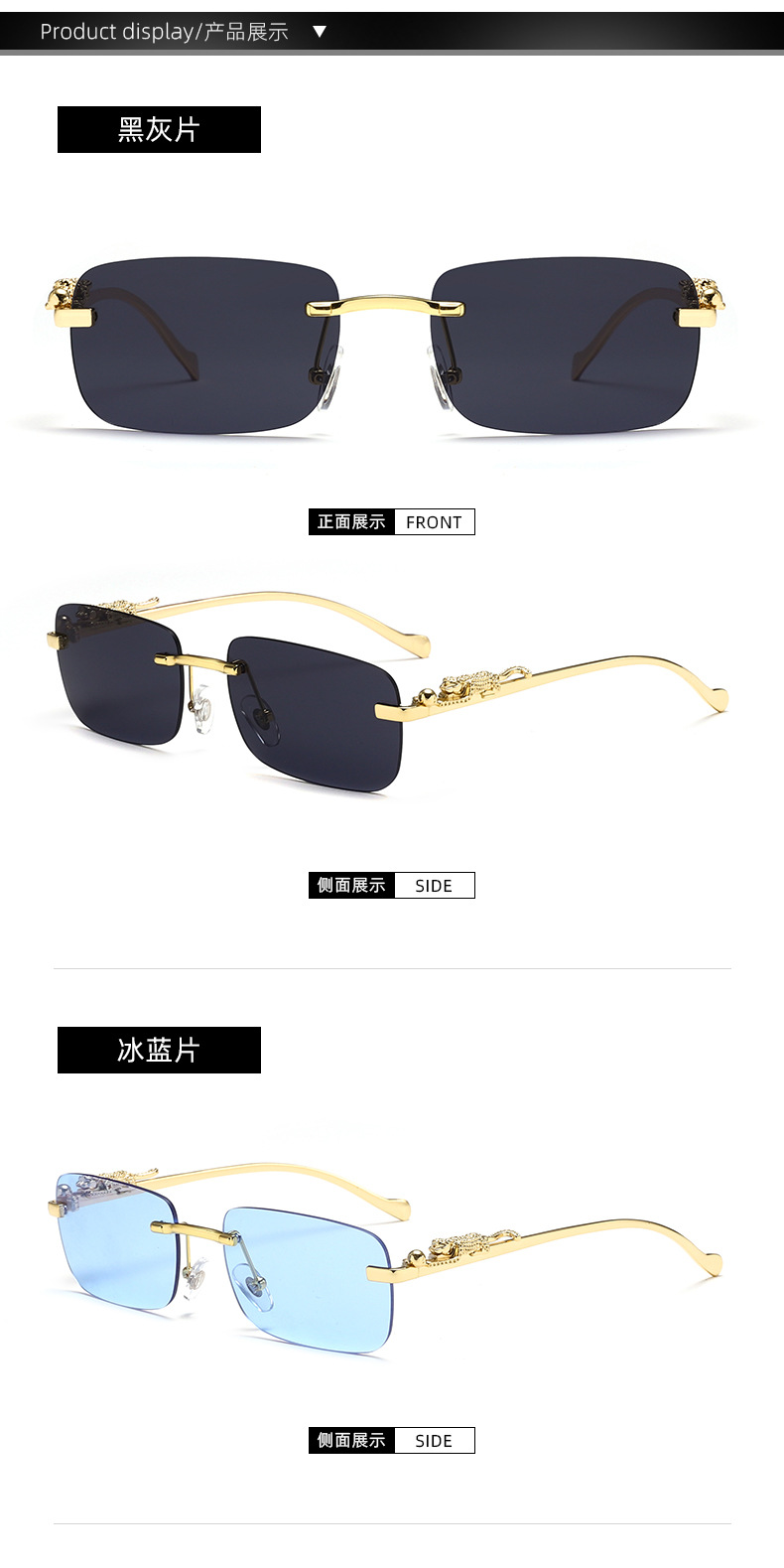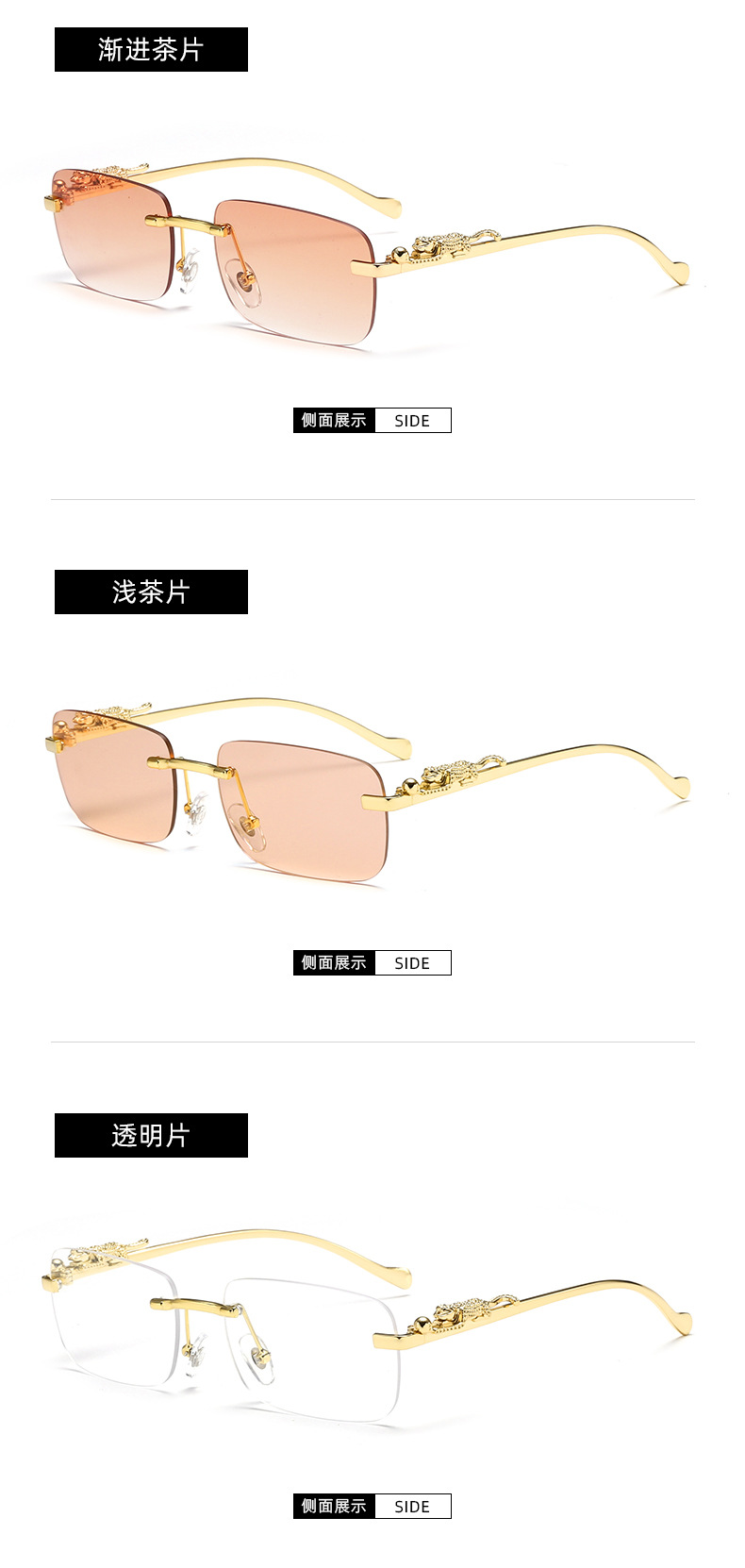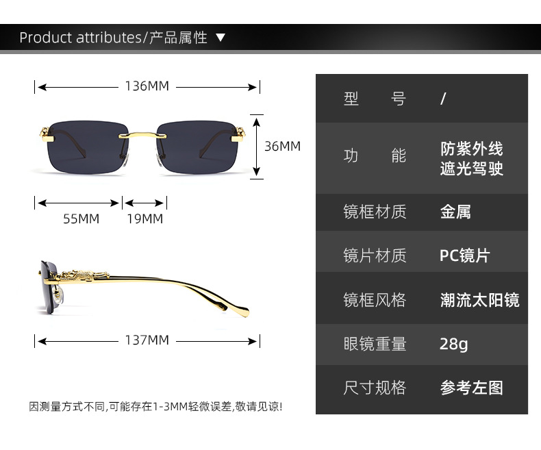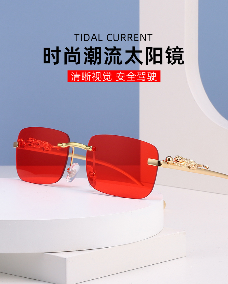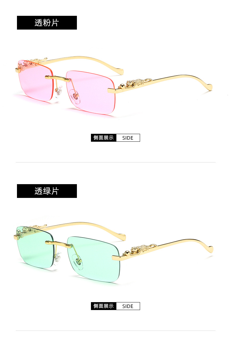 치타 장식 성격 무테 선글라스 컬러 안경 남자와 여자 복고풍 표범 머리 금속 선글라스 크로스 보더 도매스토어 가기