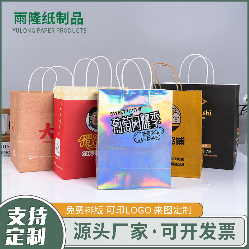 화이트 카드 크래프트 종이 토트 백 테이크 아웃 백 의류 종이 가방 선물 포장 가방 쇼핑 플러스 로고 토트 지스토어 가기