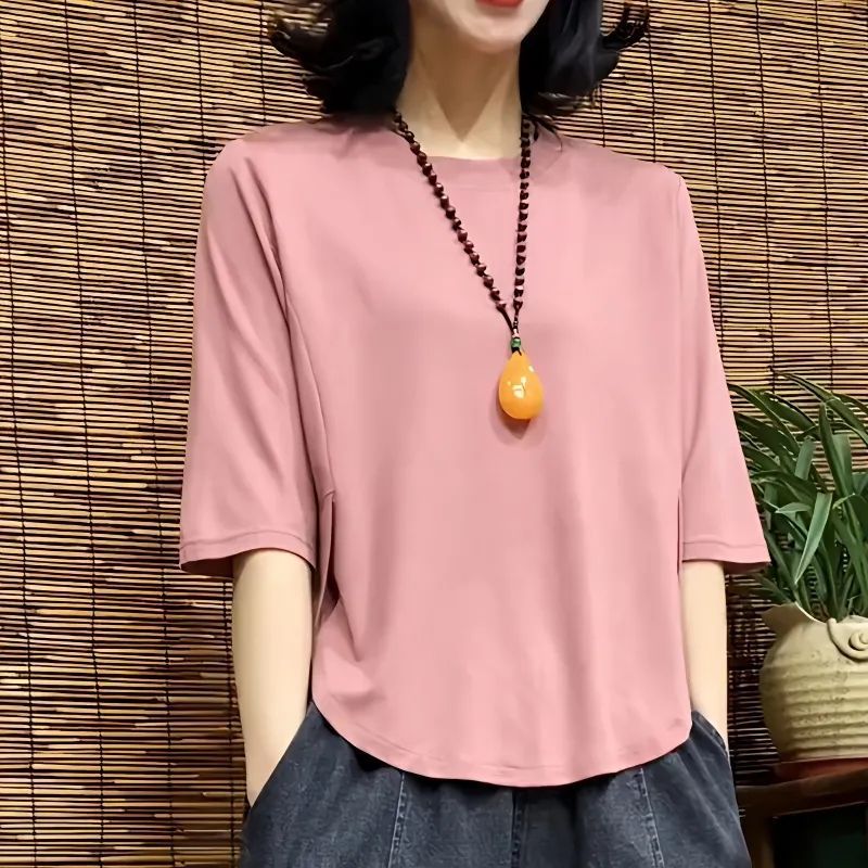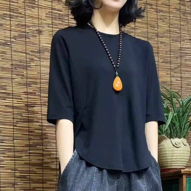 100% 면 고급 고기 커버 불규칙 티셔츠 여성용 새로운 중간 소매 스티치 웨스턴 스타일 탑 플러스 사이즈 여름 작은 셔츠스토어 가기