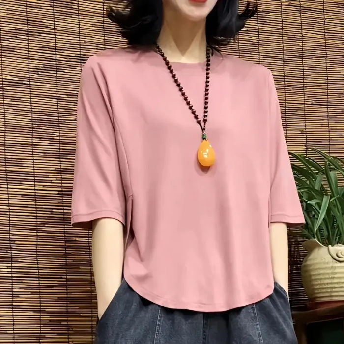 100% 면 고급 고기 커버 불규칙 티셔츠 여성용 새로운 중간 소매 스티치 웨스턴 스타일 탑 플러스 사이즈 여름 작은 셔츠