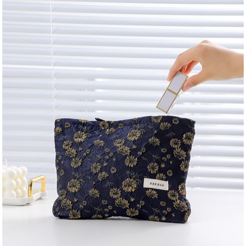 한국식 골든 데이지 컬러 염색 화장품 가방 여행 휴대용 지퍼 캔버스 보관 가방 립스틱 클러치 백
