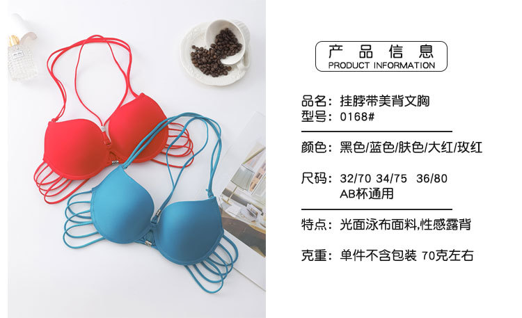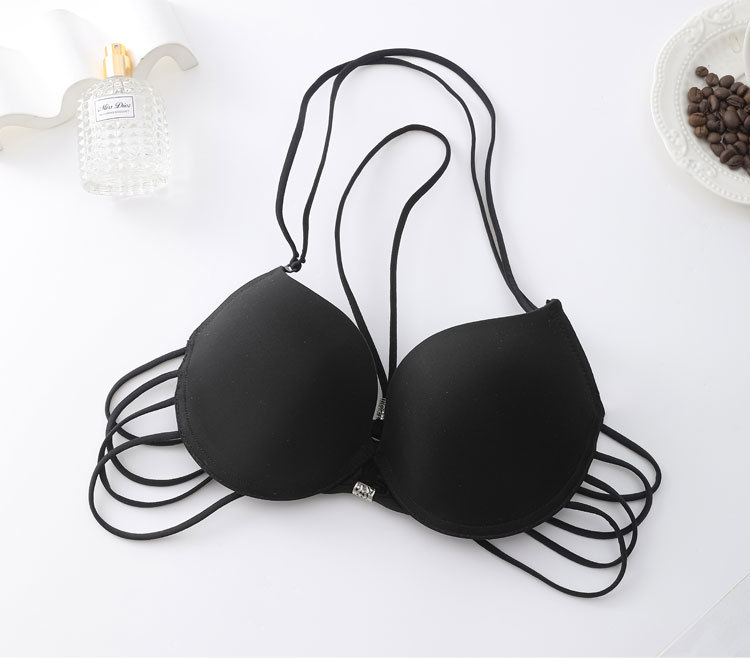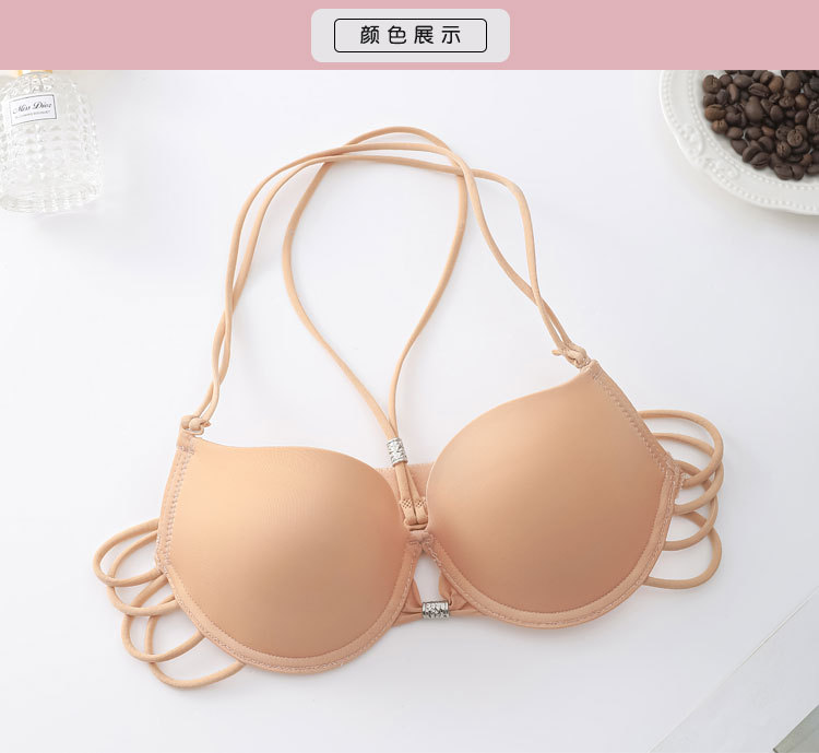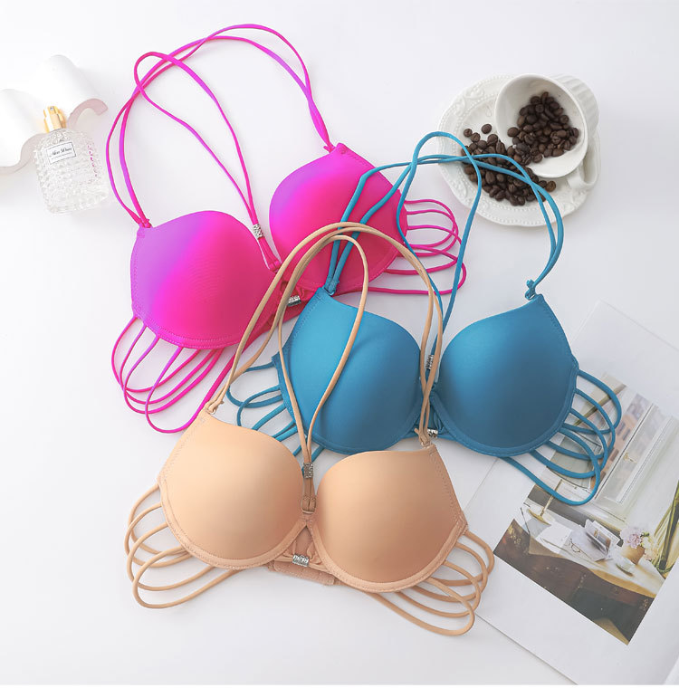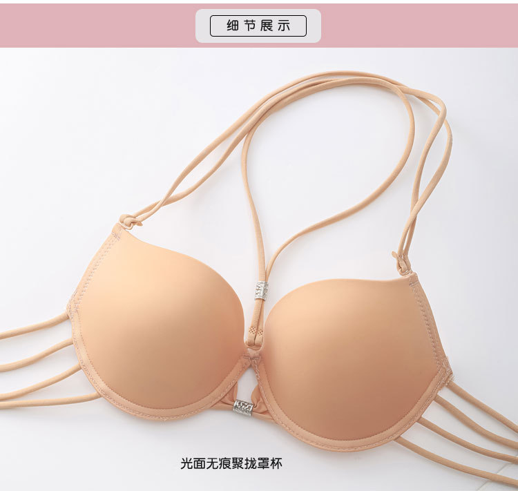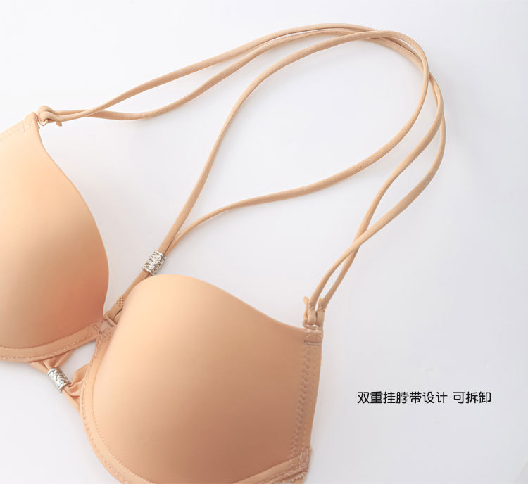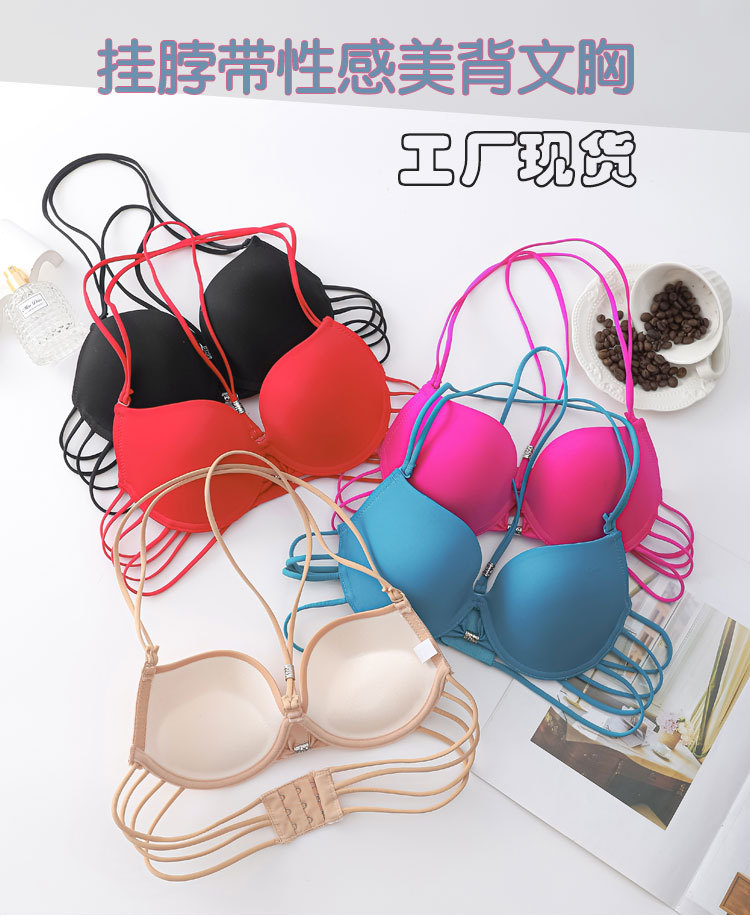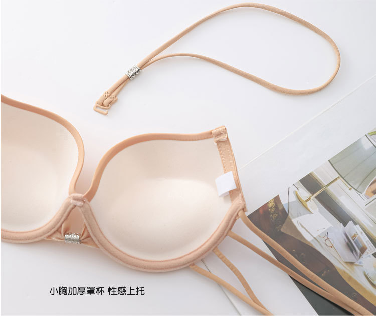 공장 재고 작은 가슴 두꺼운 푸시 업 브라 광택 추적없는 목 벨트 성적인 아름다움 백리스 속옷 패션 소녀스토어 가기