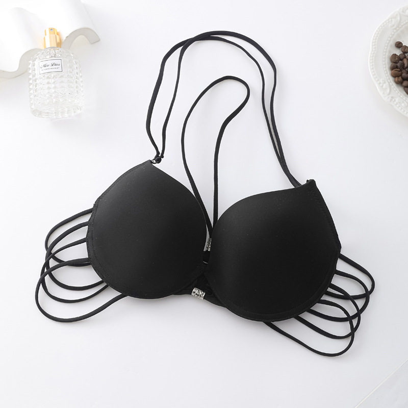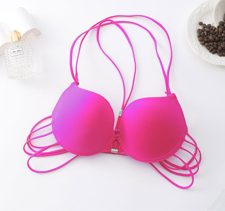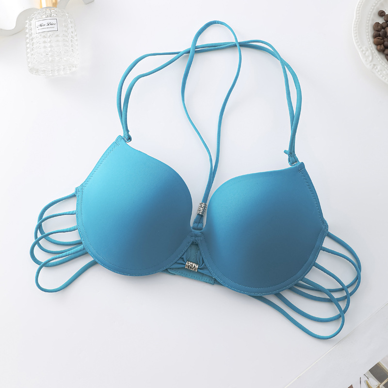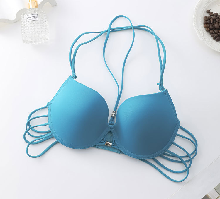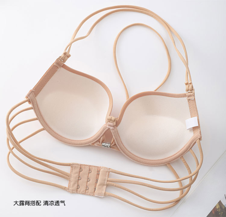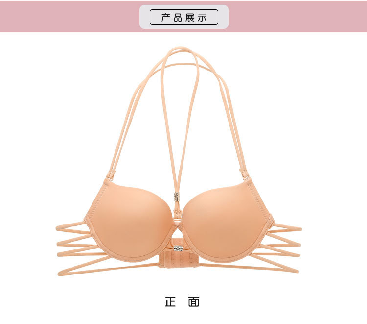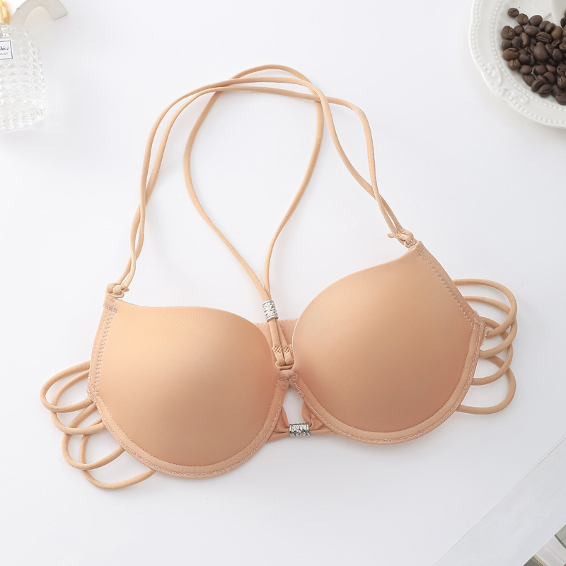 공장 재고 작은 가슴 두꺼운 푸시 업 브라 광택 추적없는 목 벨트 성적인 아름다움 백리스 속옷 패션 소녀스토어 가기
