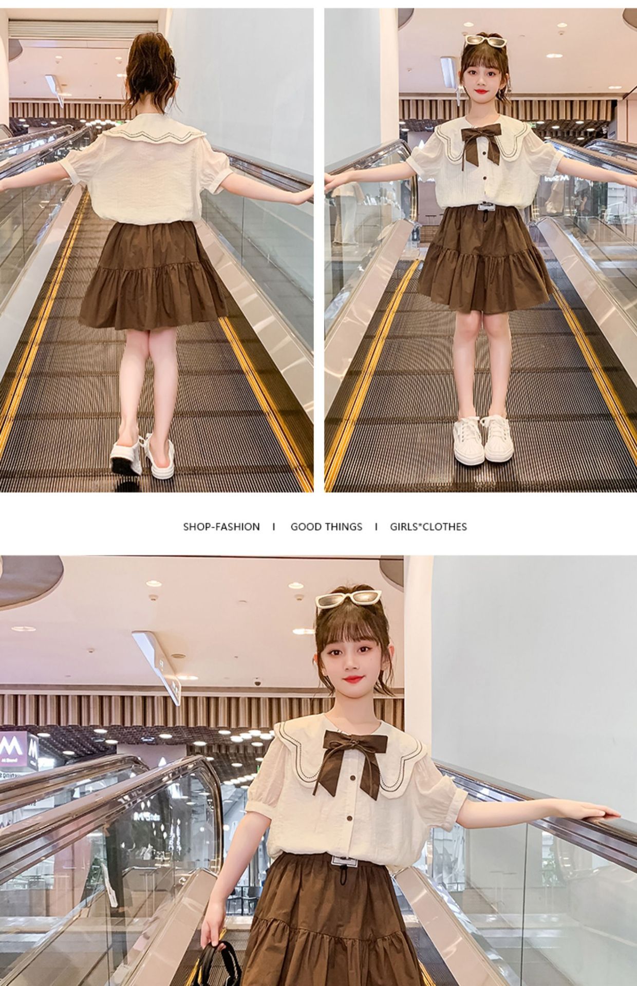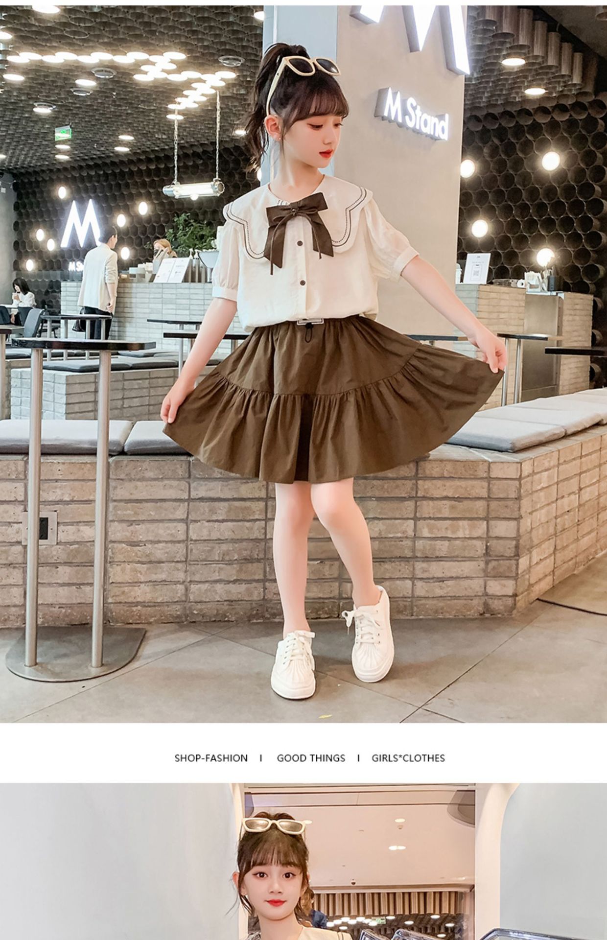 소녀 원피스 세트 2024 여름 새로운 어린이 서양식 인터넷-중대형 어린이 대학 스타일 투피스 세트를위한 유명한 짧은 원피스스토어 가기