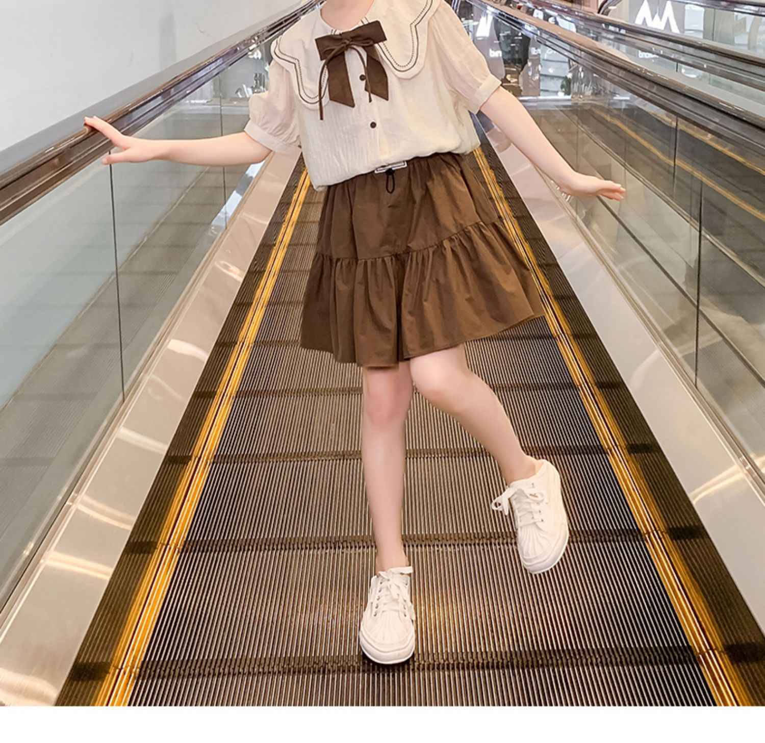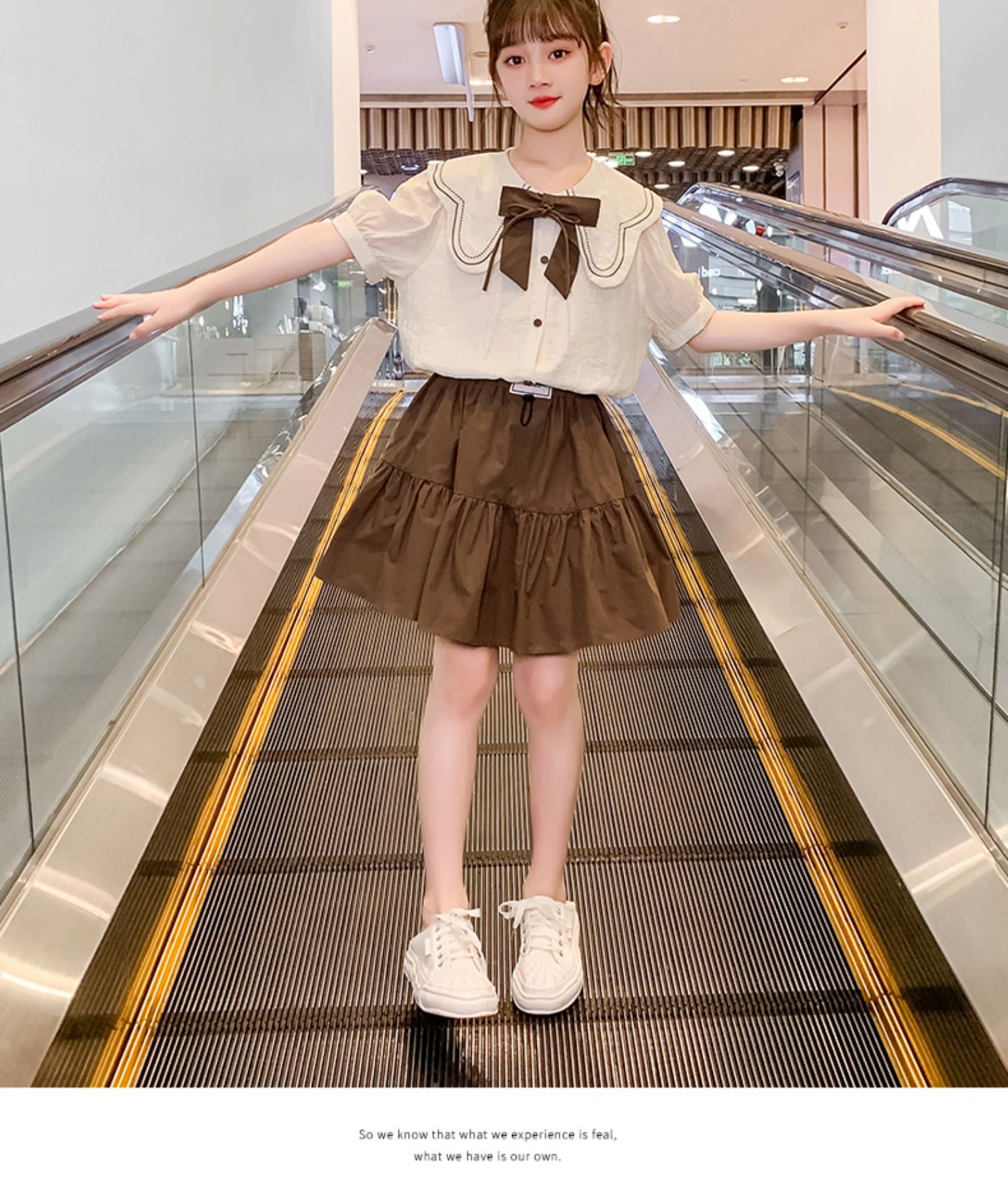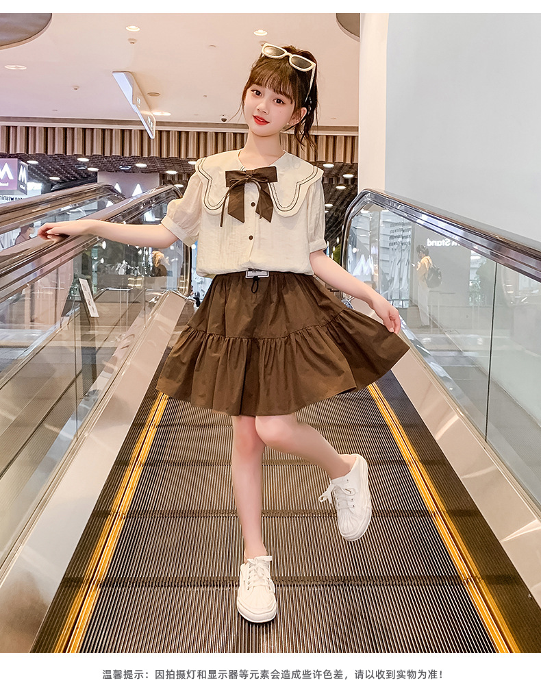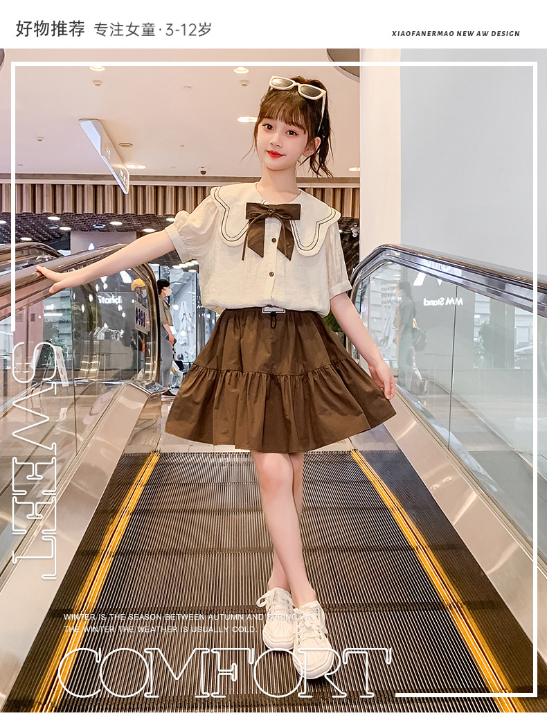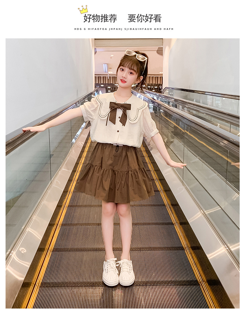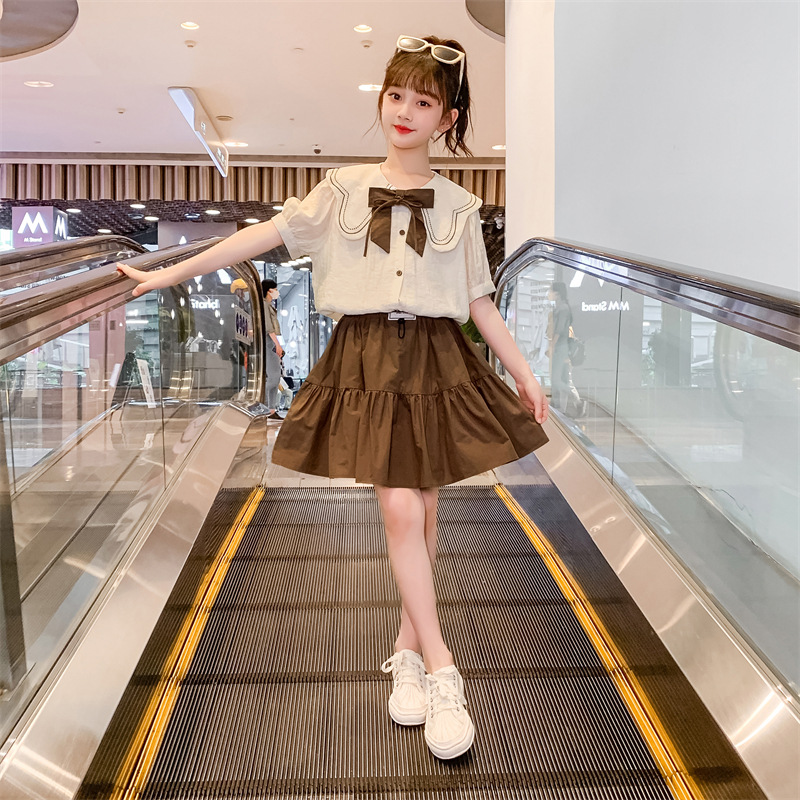 소녀 원피스 세트 2024 여름 새로운 어린이 서양식 인터넷-중대형 어린이 대학 스타일 투피스 세트를위한 유명한 짧은 원피스
