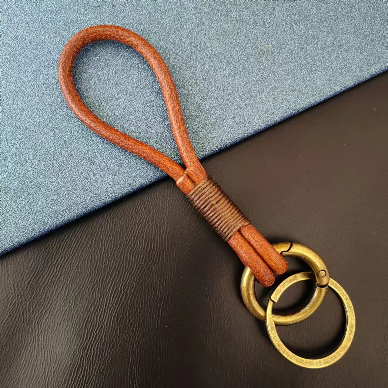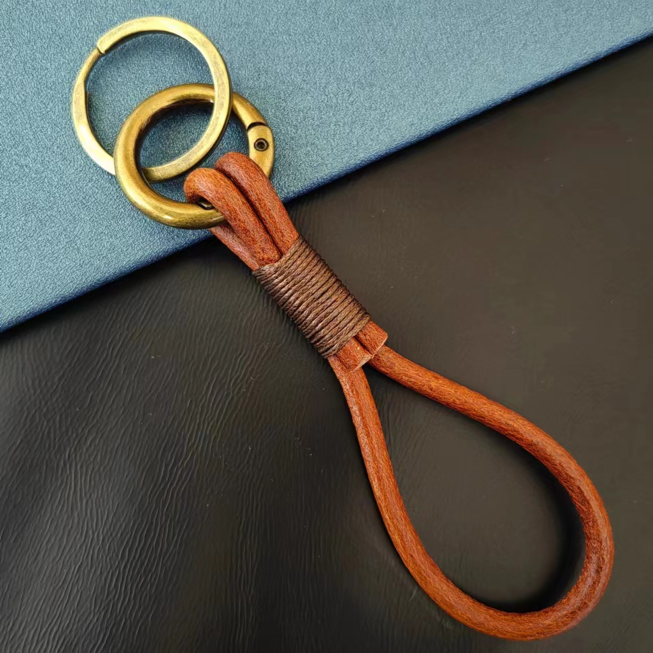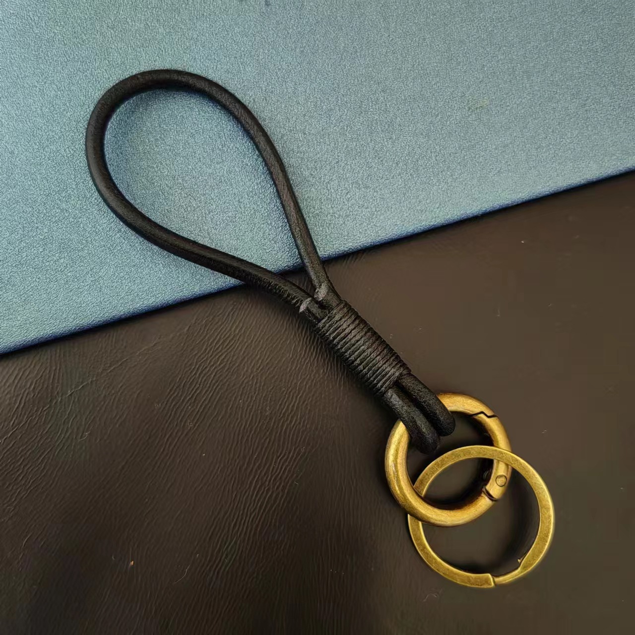 【品名】:牛皮编织钥匙扣【材质】:牛皮+合金+铁圈【货号】:p091