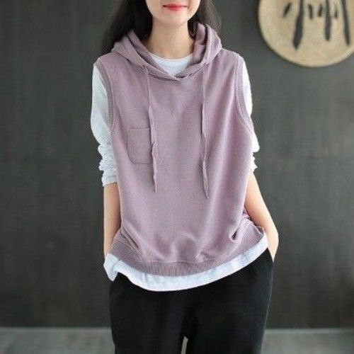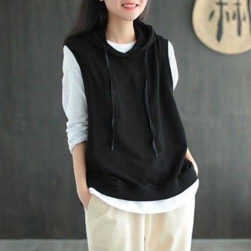 코튼 후드 조끼 여성용 풀오버 봄과 가을 새로운 여성용 느슨한 캐주얼 모든 경기 민소매 스웨터 탑 여성용 겉옷스토어 가기