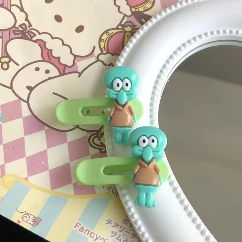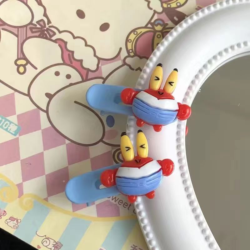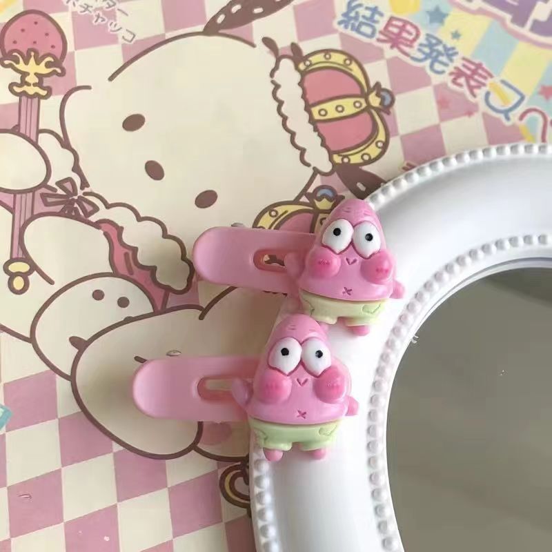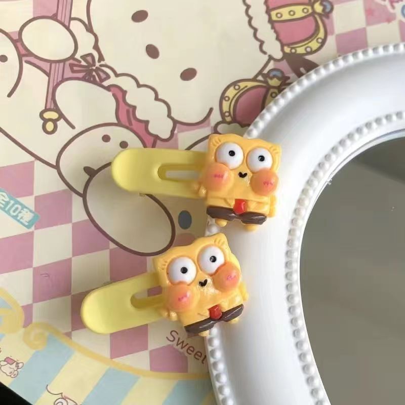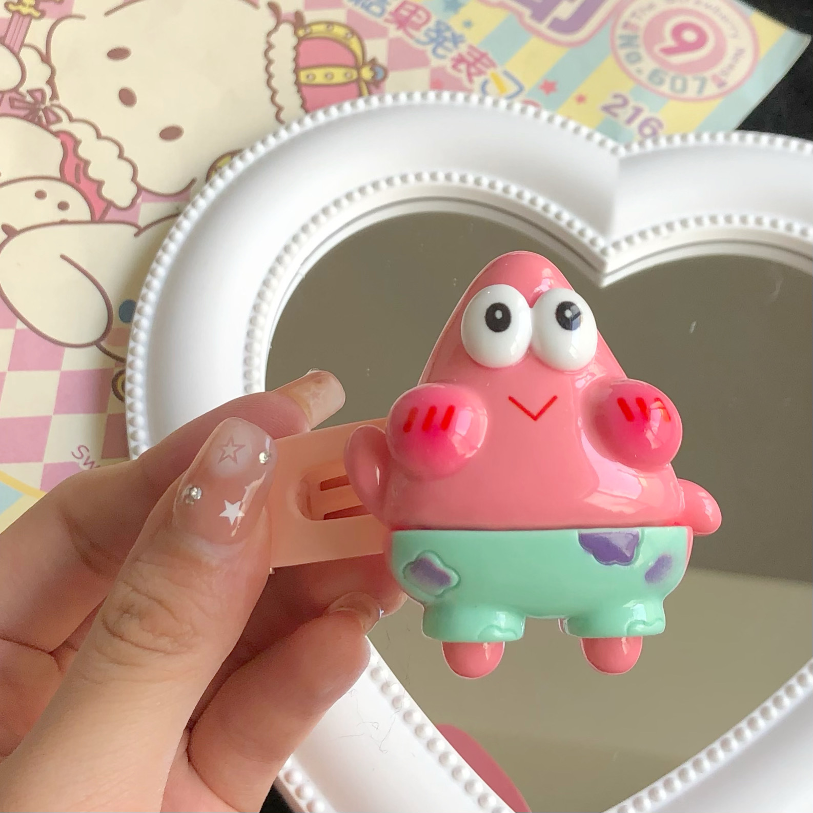 귀여운 스폰지 밥 스타 만화 사이드 클립 소녀의 심장 재미 큰 머리핀 학생 헤어 액세서리와 TikTok스토어 가기