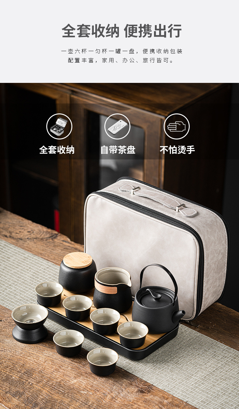 엔트리 럭셔리 고급 블랙 도자기 찻주전자 찻잔 쿵푸 차 세트 차 세트 세라믹 야외 캠핑 자동차 휴대용 여행스토어 가기