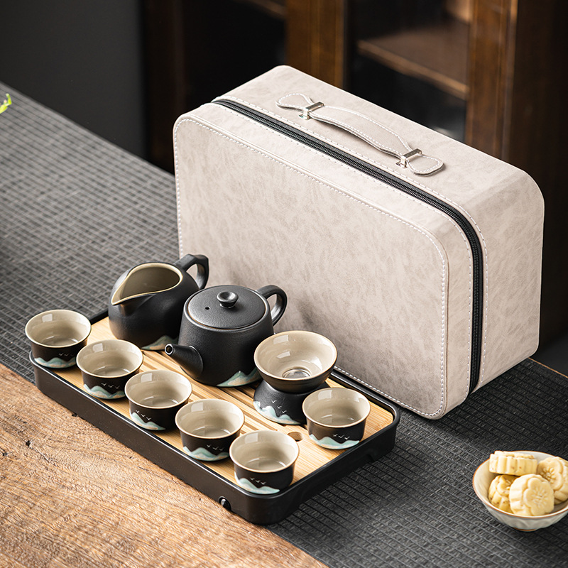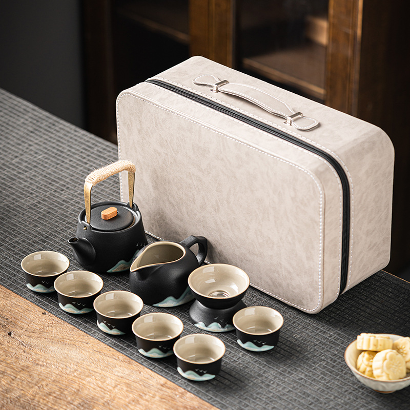 엔트리 럭셔리 고급 블랙 도자기 찻주전자 찻잔 쿵푸 차 세트 차 세트 세라믹 야외 캠핑 자동차 휴대용 여행
