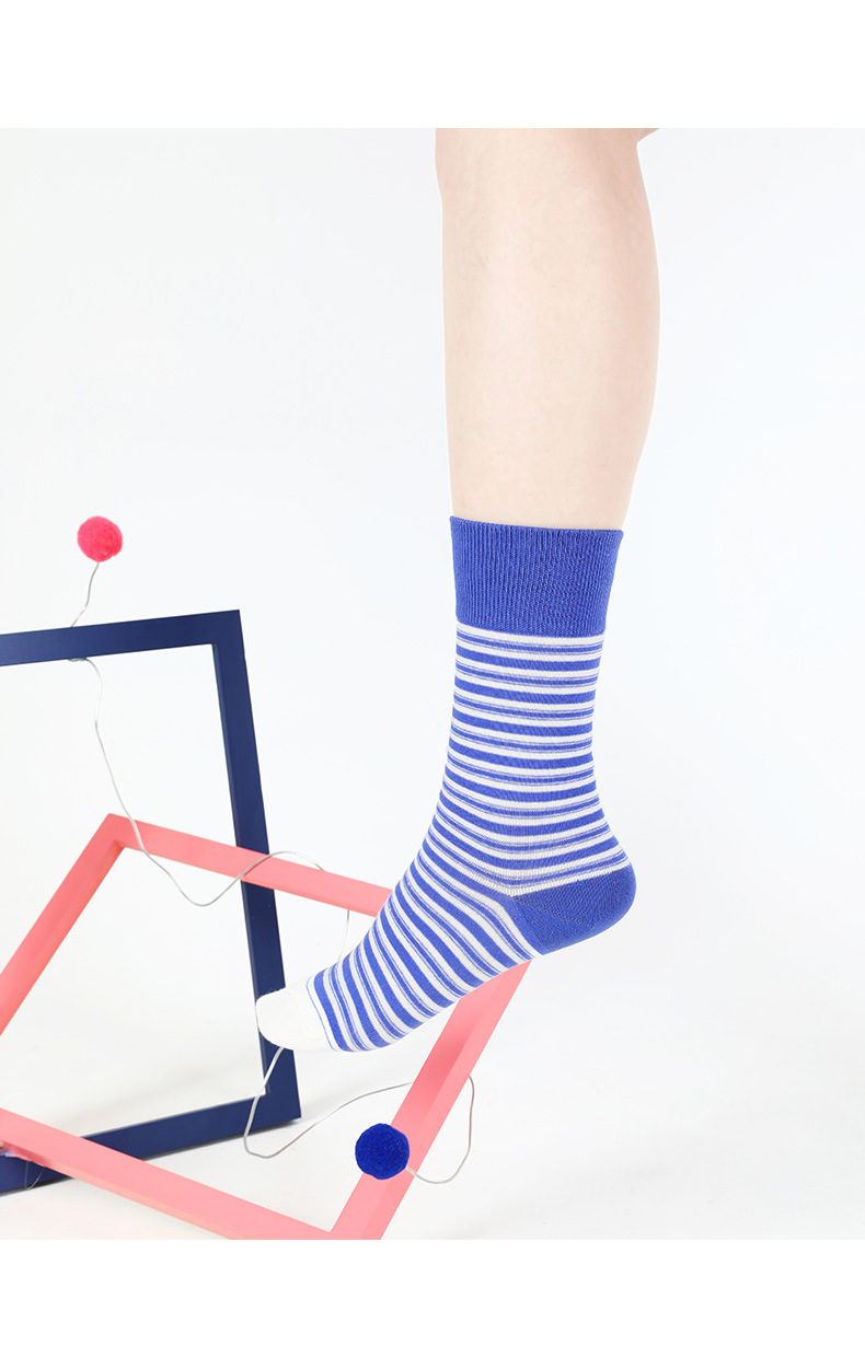 DAMAHOOV 여성용 다채로운 줄무늬 양말 봄과 여름 새로운 간단한 일본 청소년 유행 남성용 중간 길이 양말스토어 가기