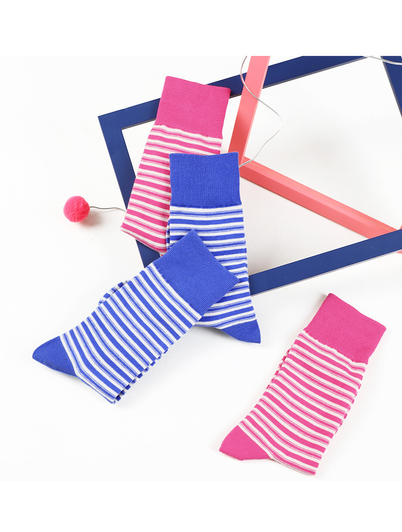 DAMAHOOV 여성용 다채로운 줄무늬 양말 봄과 여름 새로운 간단한 일본 청소년 유행 남성용 중간 길이 양말