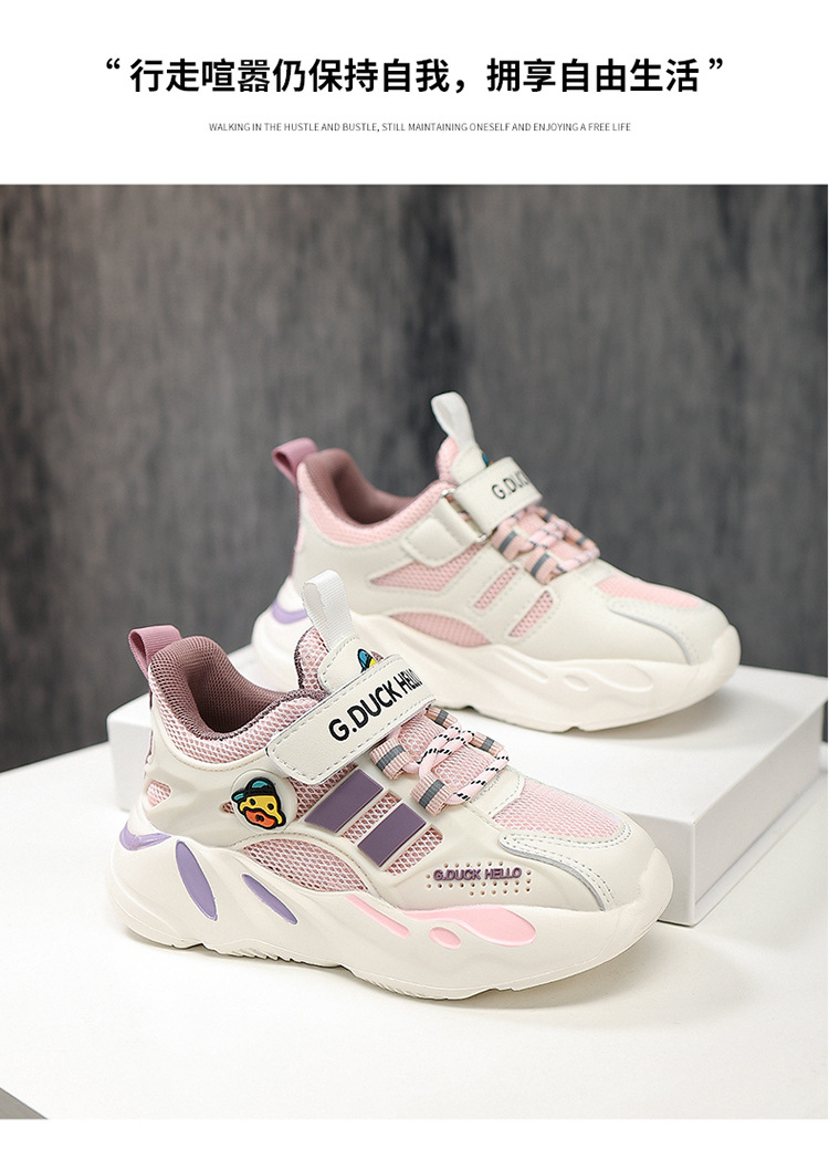 노란 오리 브랜드 어린이 신발 봄과 가을의 새로운 메쉬 가죽 신발 어린이와 소녀 소년 운동화 신발