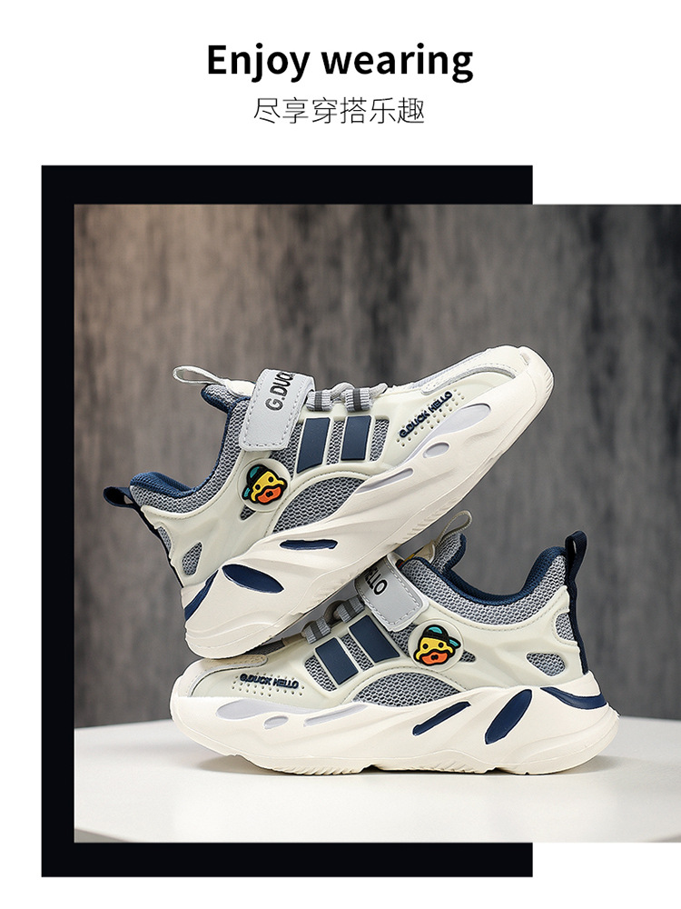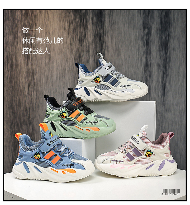 노란 오리 브랜드 어린이 신발 봄과 가을의 새로운 메쉬 가죽 신발 어린이와 소녀 소년 운동화 신발스토어 가기