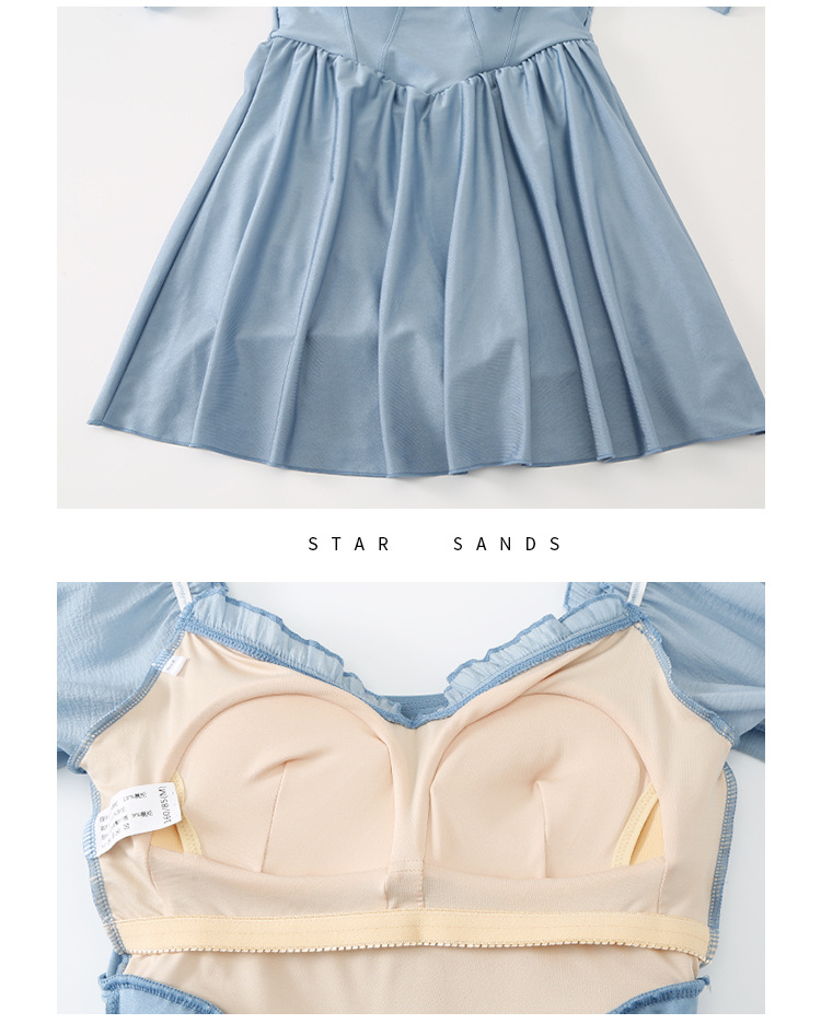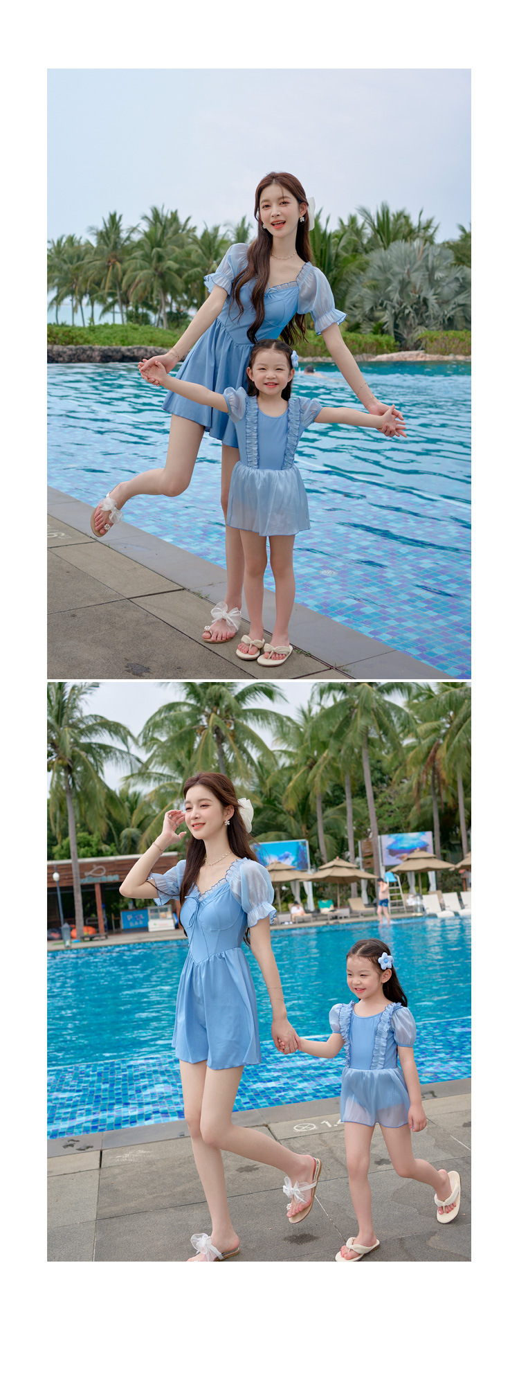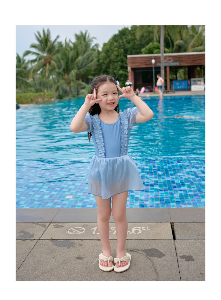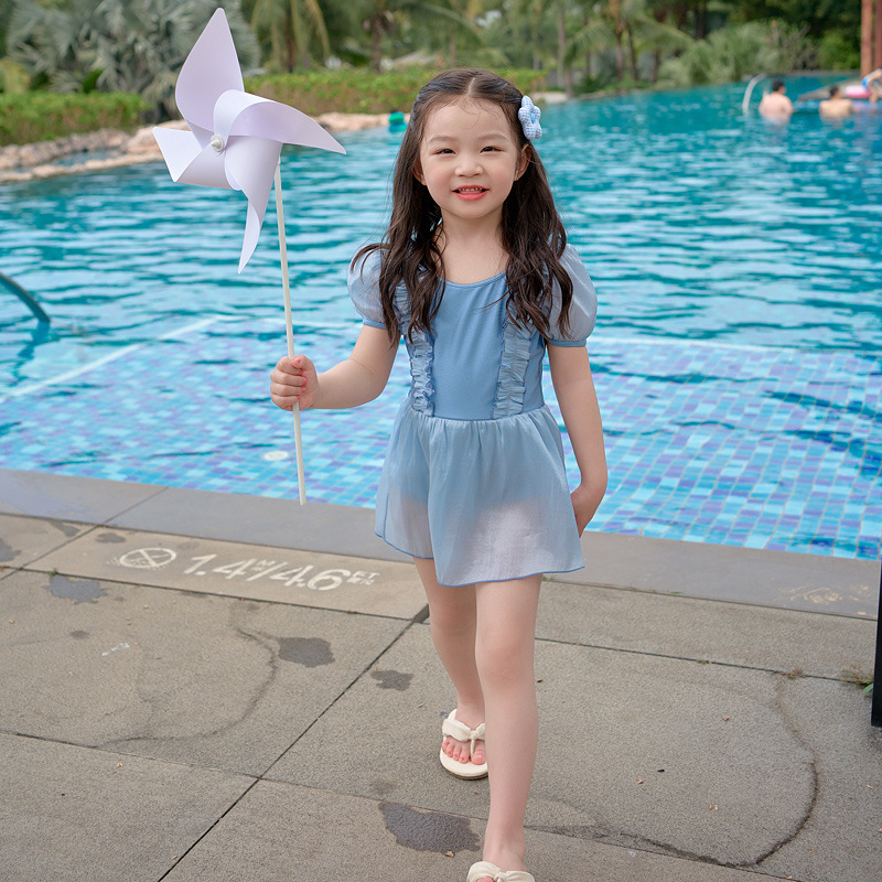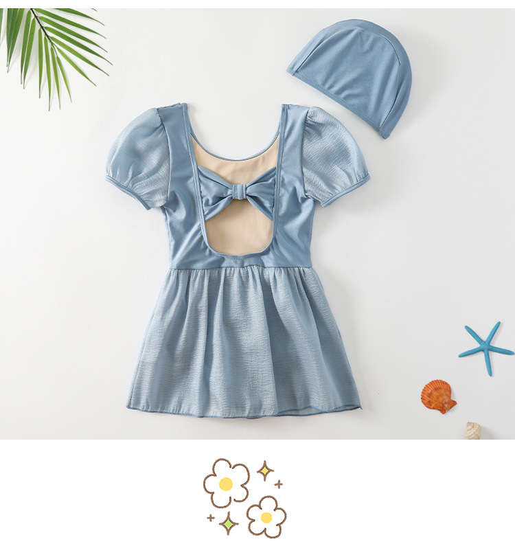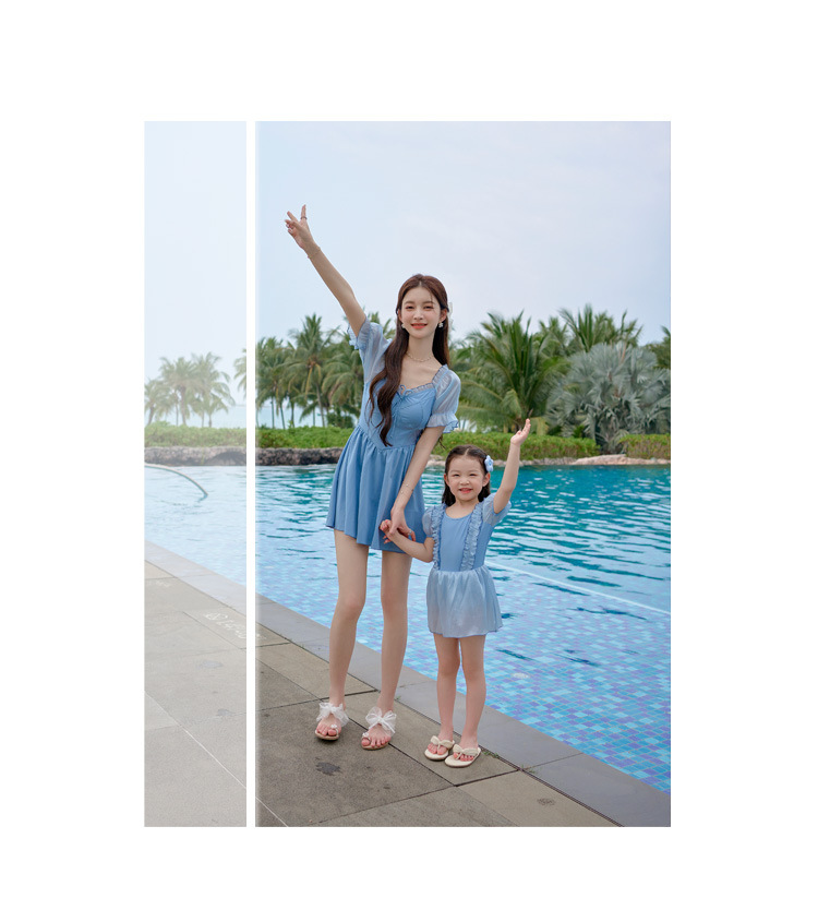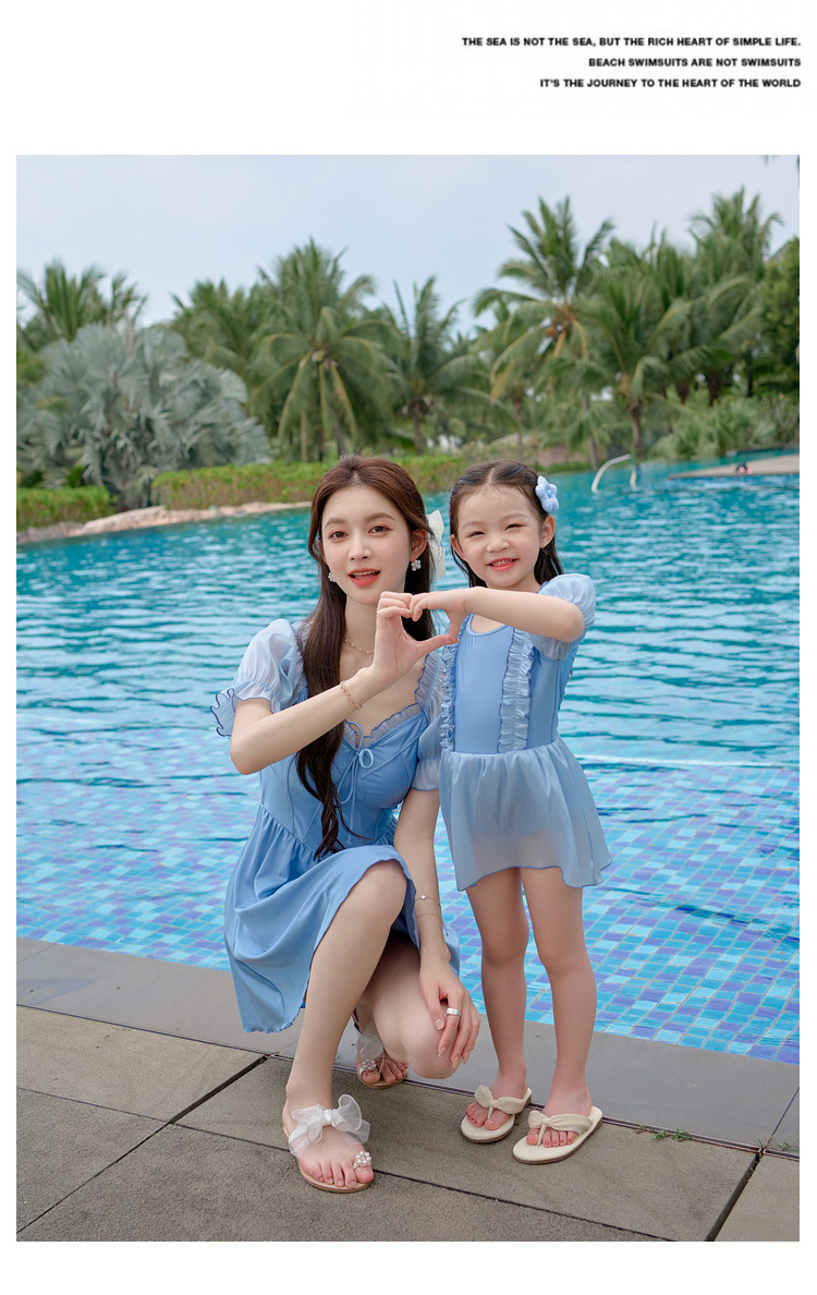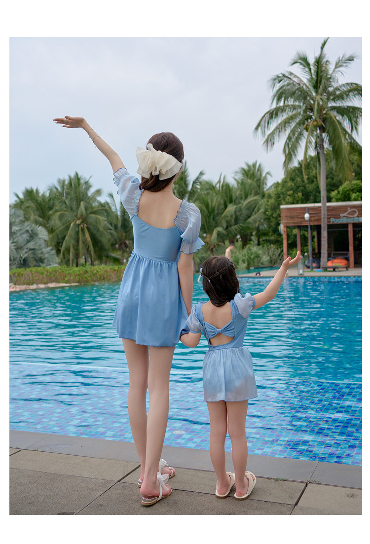 부모-자식 수영복 여성 어린이 중간 및 큰 어린이 원피스 스커트 반팔 온천 수영복 여성과 여성 원피스 슬리밍 배꼽 커버 작은 가슴