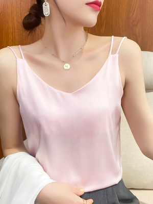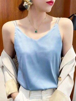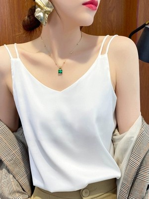 실크 캐미솔 여성용 내부 세트 화이트 블랙베이스 새틴 뽕나무 실크 탑 봄과 여름 작은 V-넥스토어 가기