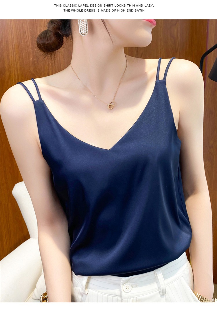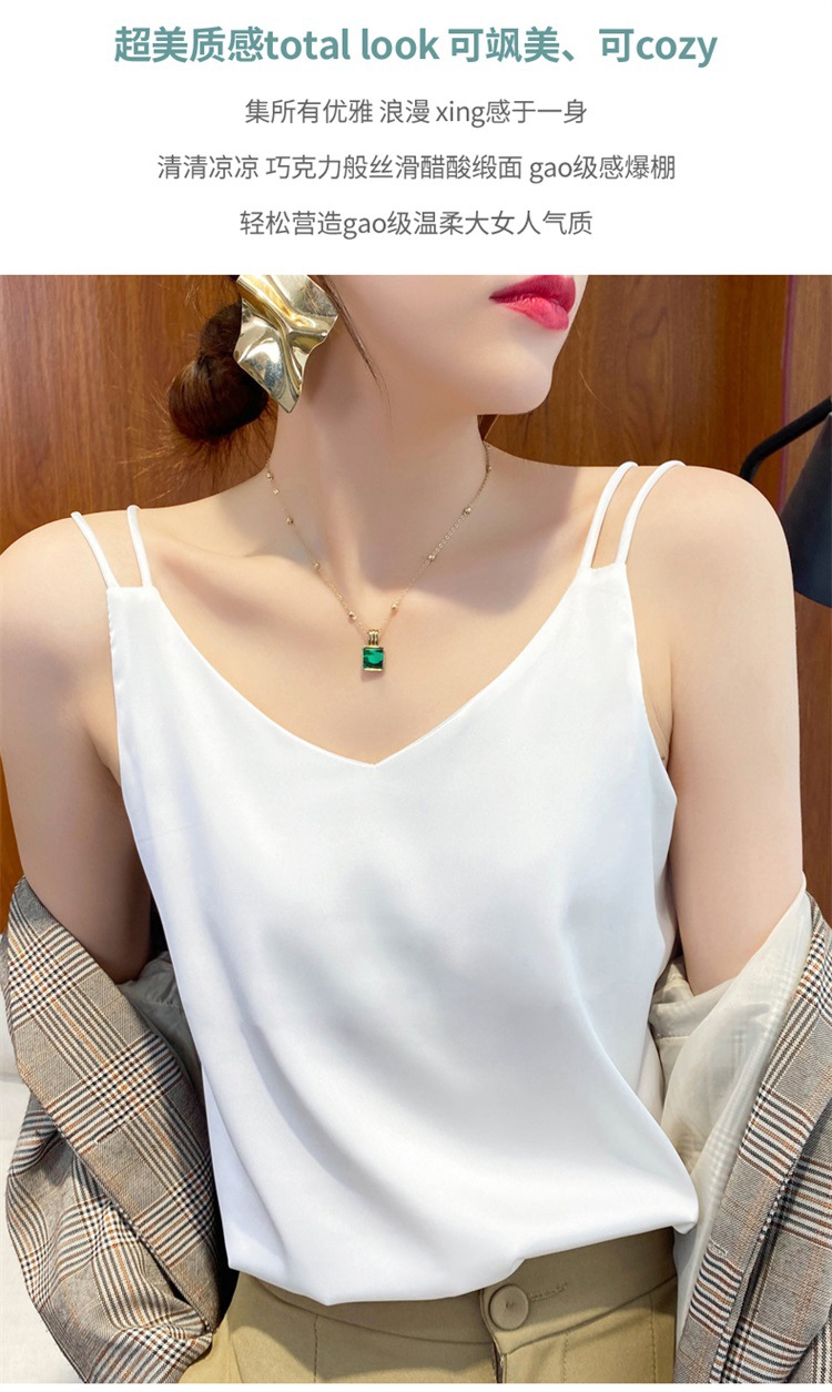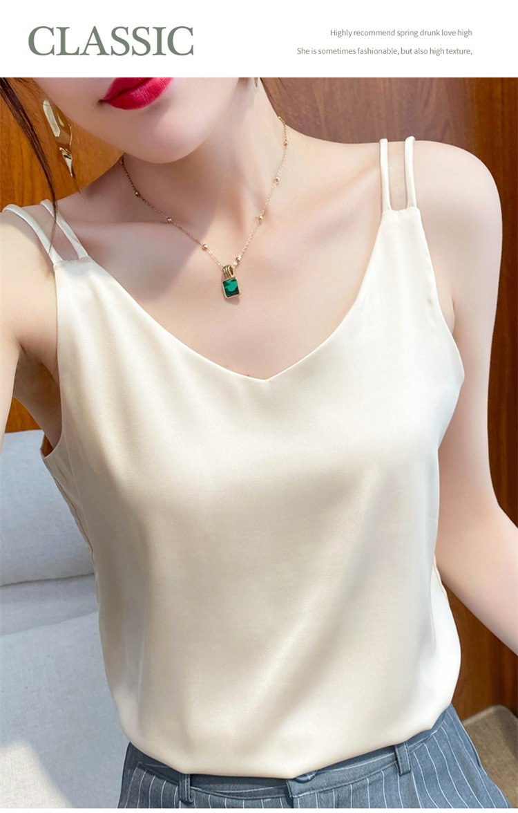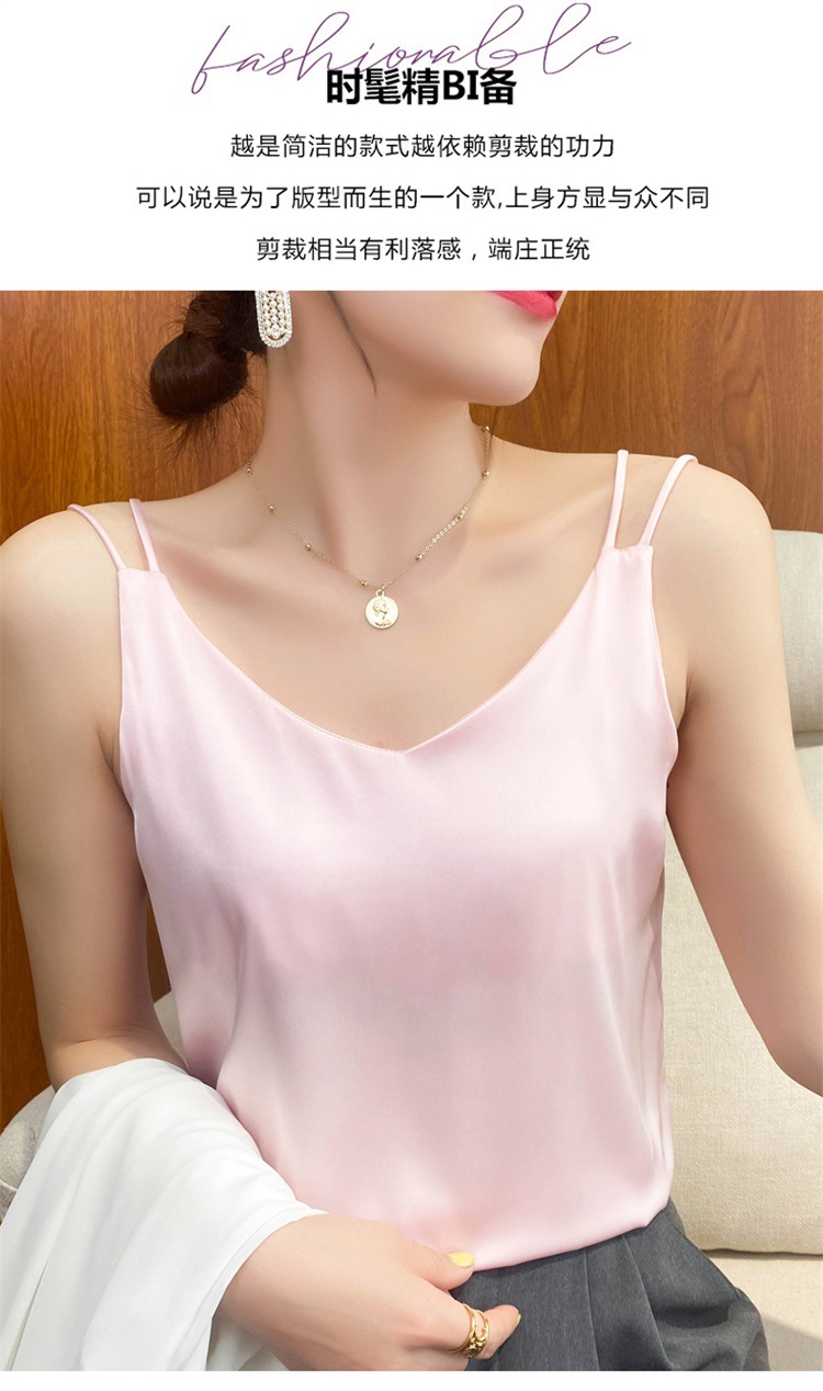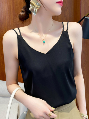 실크 캐미솔 여성용 내부 세트 화이트 블랙베이스 새틴 뽕나무 실크 탑 봄과 여름 작은 V-넥