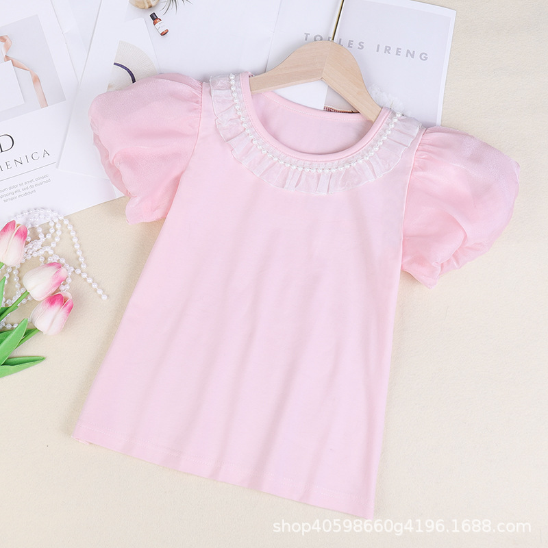 2023 여름 여아 아동 티셔츠 퓨어 코튼 화이트 웨스턴 스타일 얇은 아우터 캐주얼 탑
