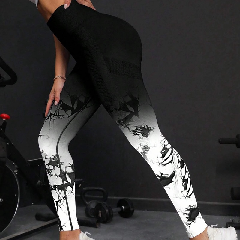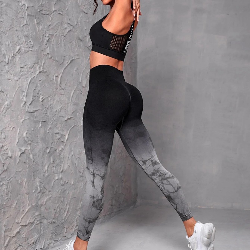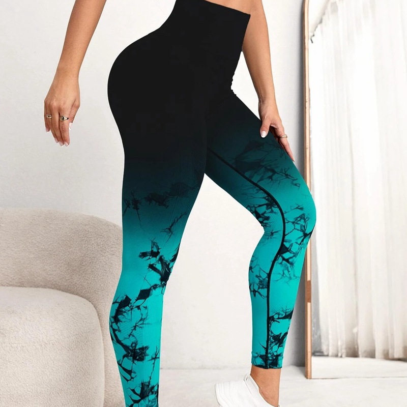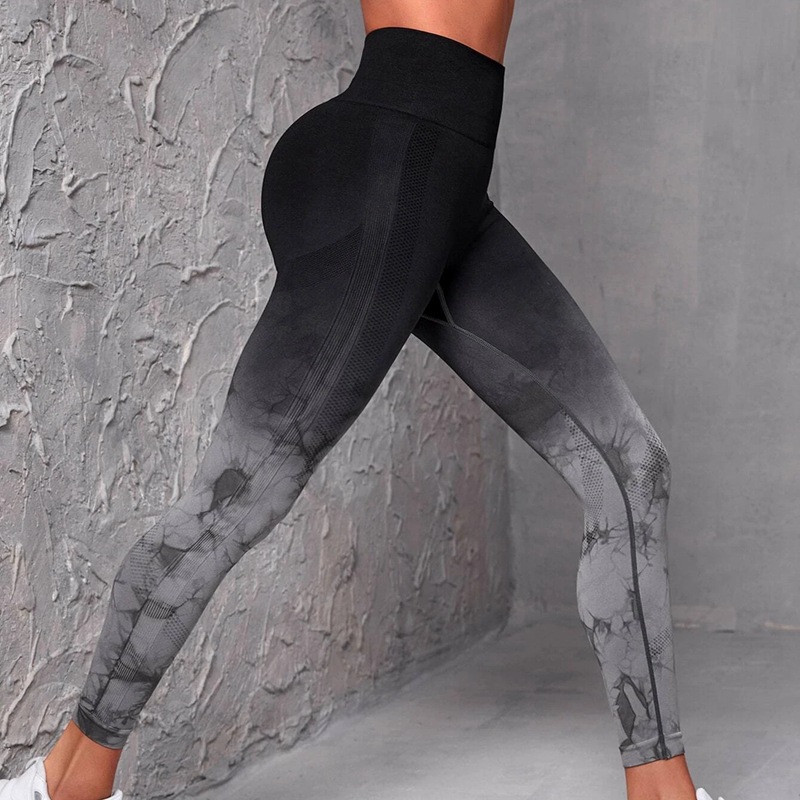 유럽과 미국의 타이 염료 그라디언트 피트니스 바지 여성 탄성 엉덩이 리프팅 요가 바지 높은 허리 타이트 복숭아 바지 빠른 건조 스포츠 바지