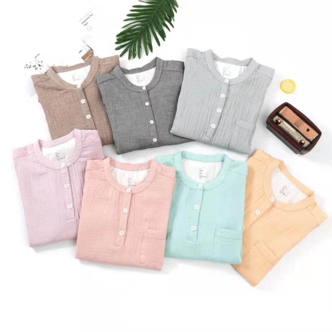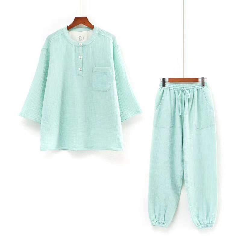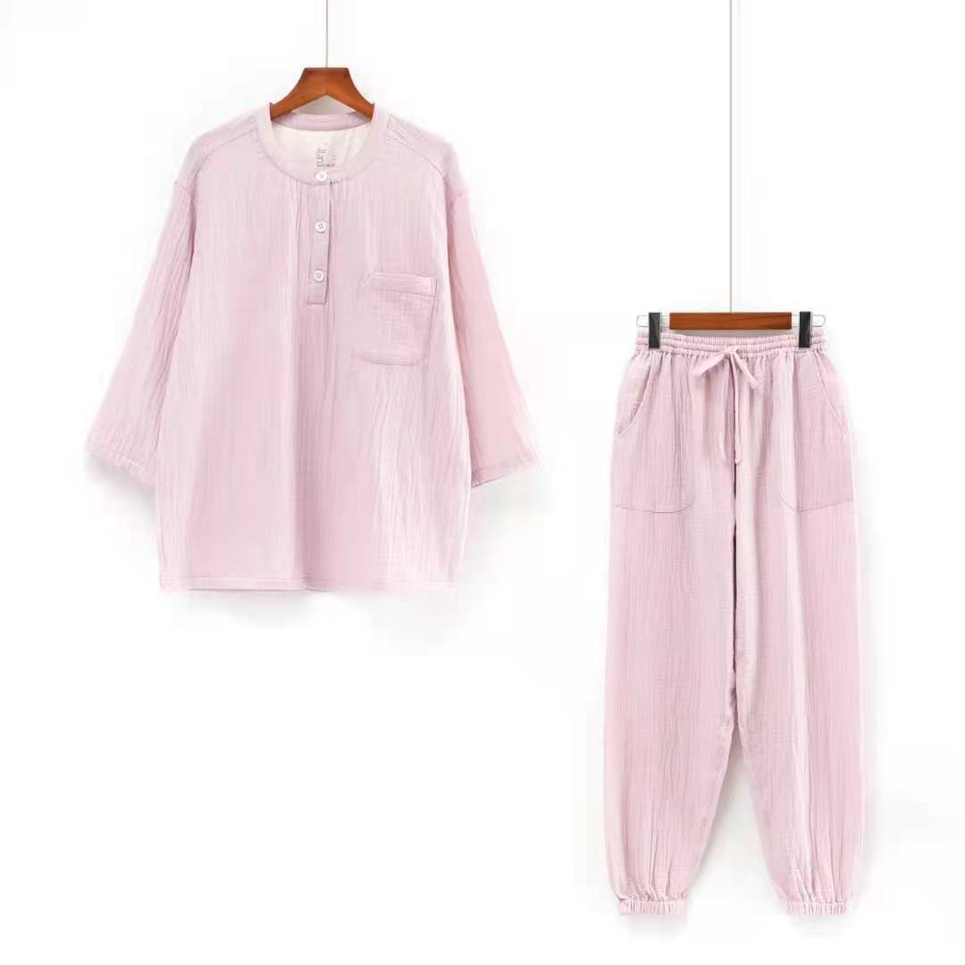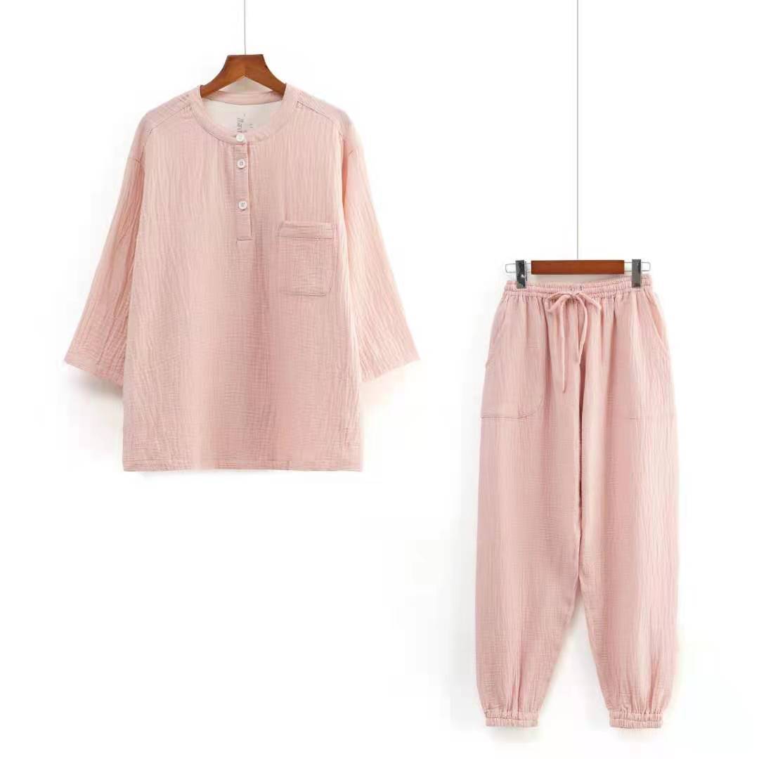 남성과 여성을위한 자른 소매 잠옷 더블 크레이프 통 바지 유행 캐주얼 느슨한 세트 아웃웨어