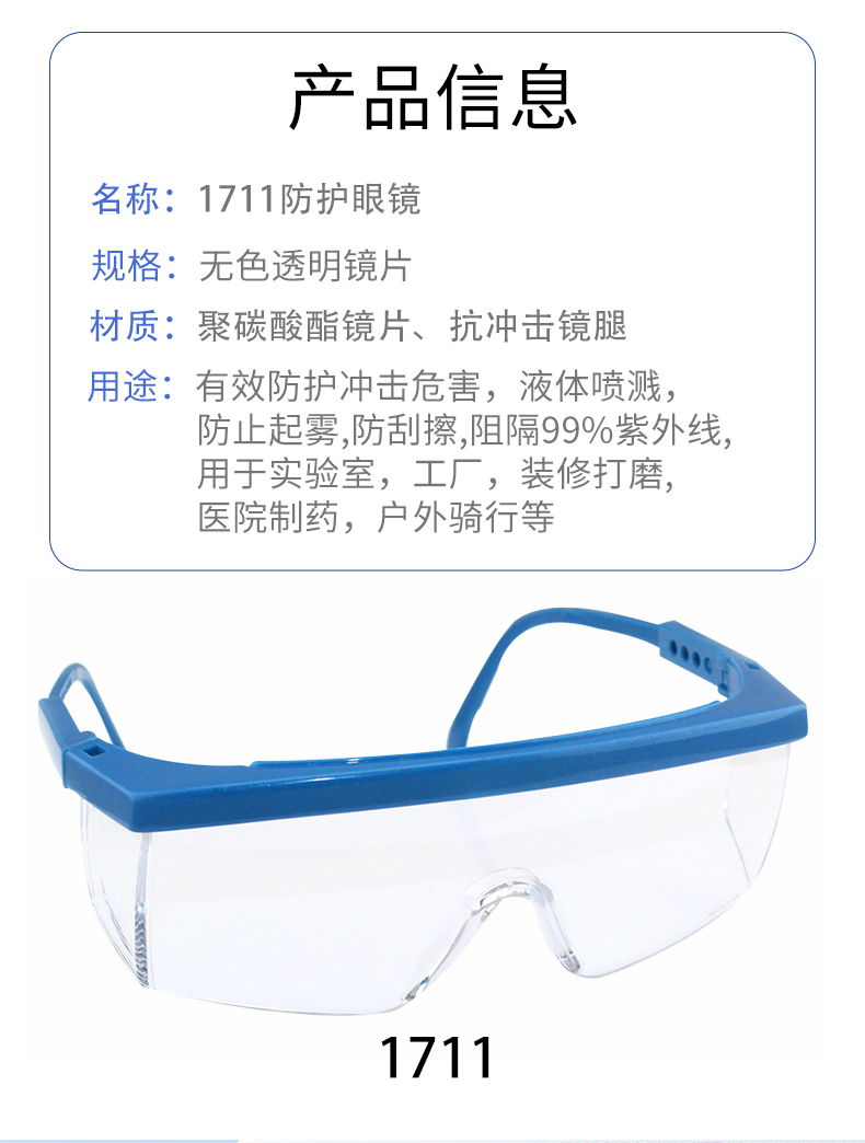 3M1711/1711AF 안개 방지 평면 보호 안경 폭발 방지 모래 방지 방진 자외선 차단 고글