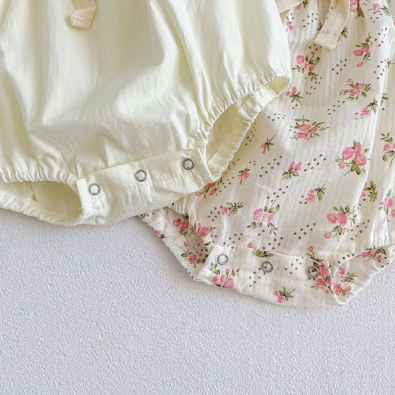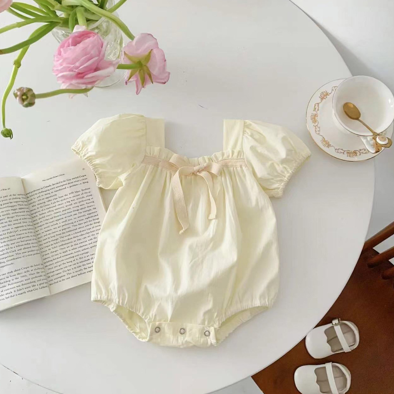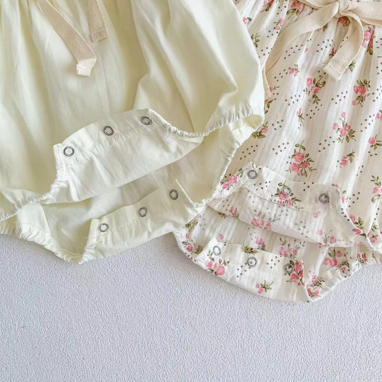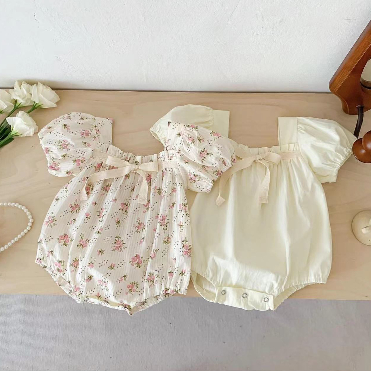 2023 여름 아기 어린이 원피스 세트 작은 꽃 활 아기 소녀 버블 슬리브 Hayak 가방 뚱뚱한 옷 등산 세트스토어 가기