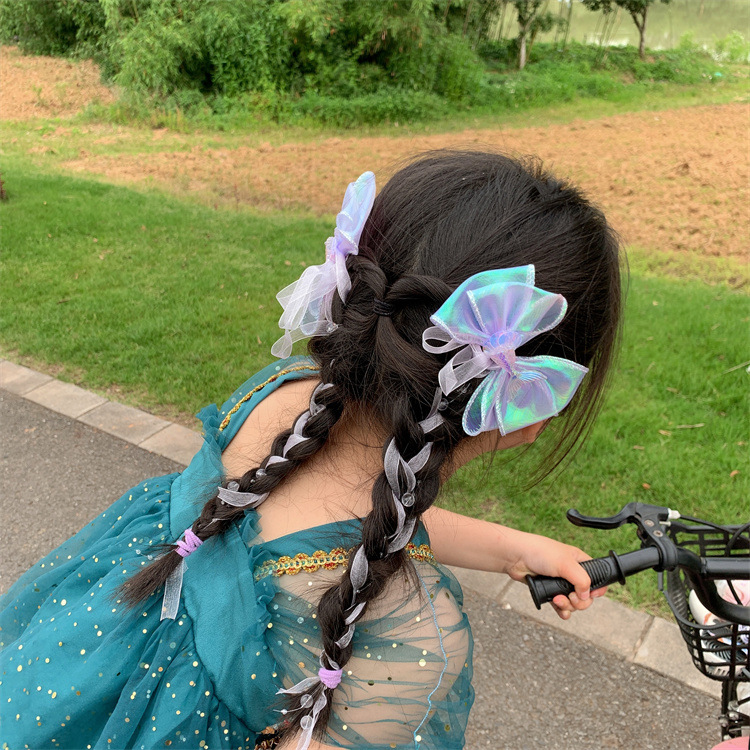 새로운 어린이 인어 지 컬러 활 머리핀 귀여운 소녀의 포니 테일 리본 머리핀 머리 모자 쌍 클립