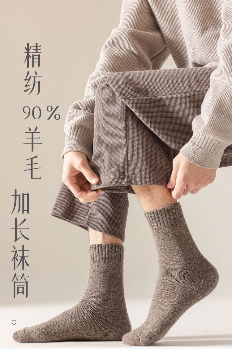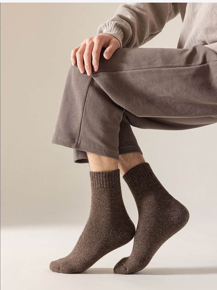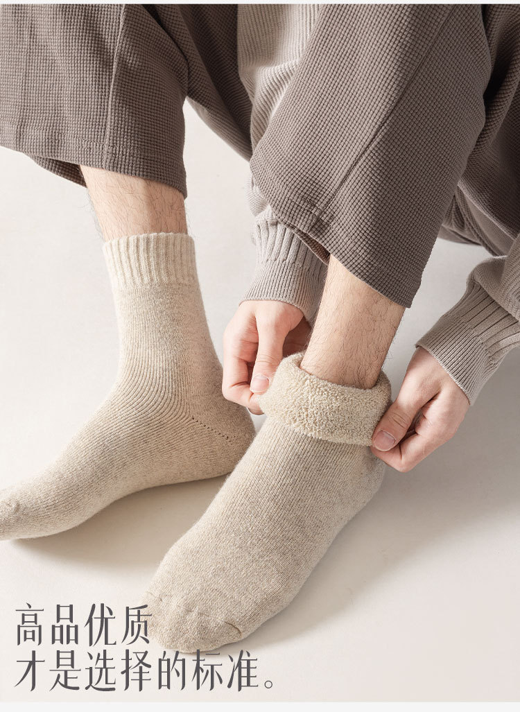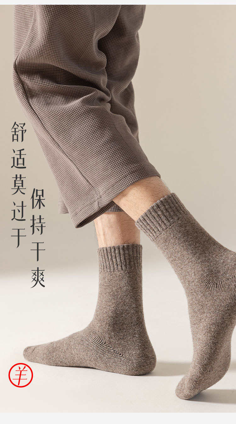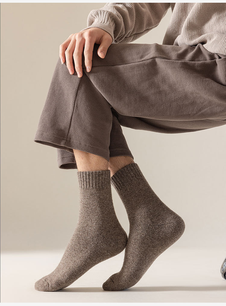 100% 순모 양말 야외 등산 및 하이킹 남성용 두꺼운 플리스 가을 겨울 보온 롱 양말 도매스토어 가기