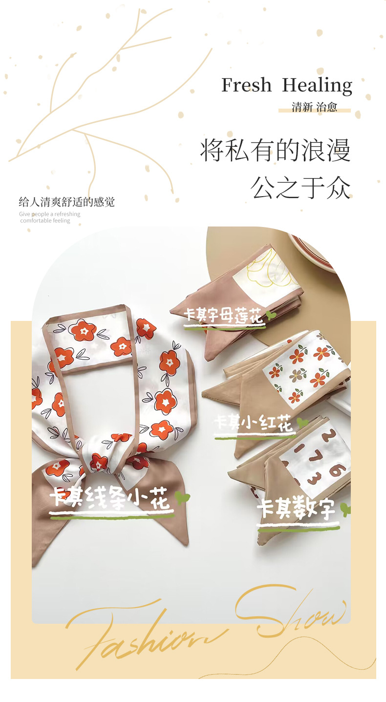 고급 카키 누드 긴 작은 실크 스카프 여성의 모든 일치 장식 넥타이 헤어 타이 가방 동반 선물 리본 헤어 밴드