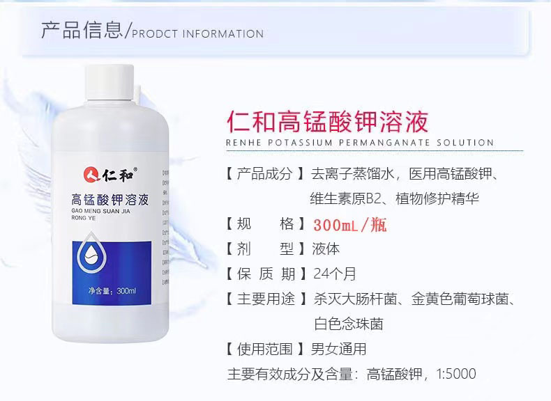 [스프링클러가있는 Renhe] 과망간산 칼륨 로션 300ml 남성 및 여성 로션 개인 제품 개인 관리 청소 솔루션스토어 가기