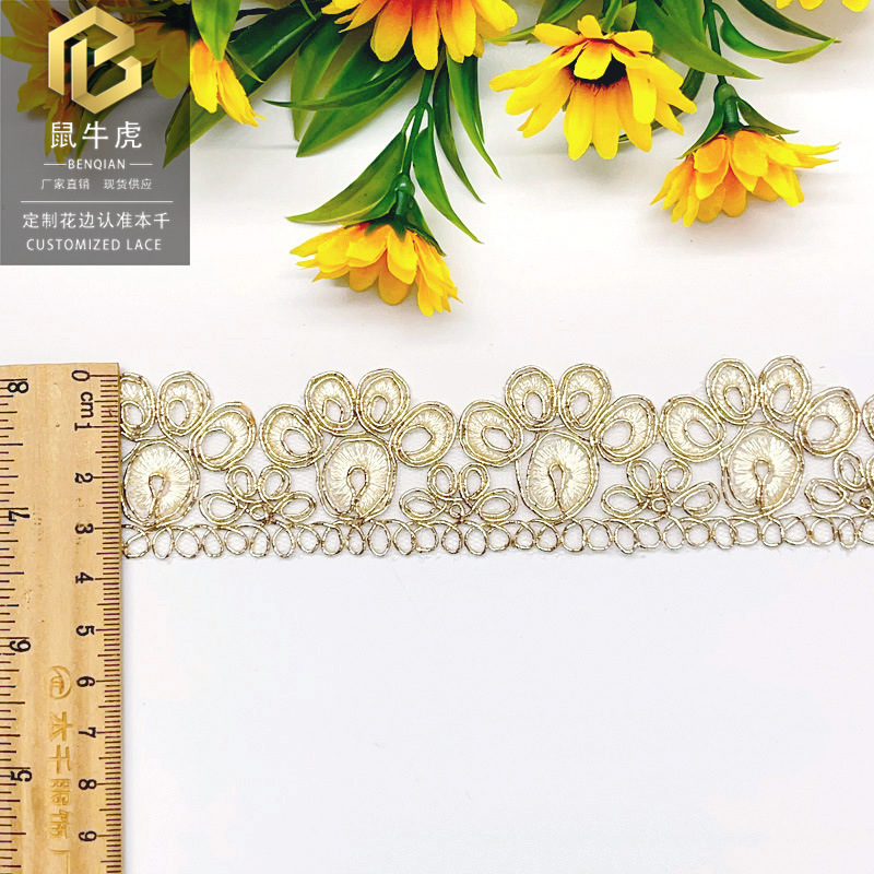 에스닉 다이 액세서리 골드 레이스 본 로프 바코드 3.5cm 아동 의류 중국 의류 액세서리 DIY 재고