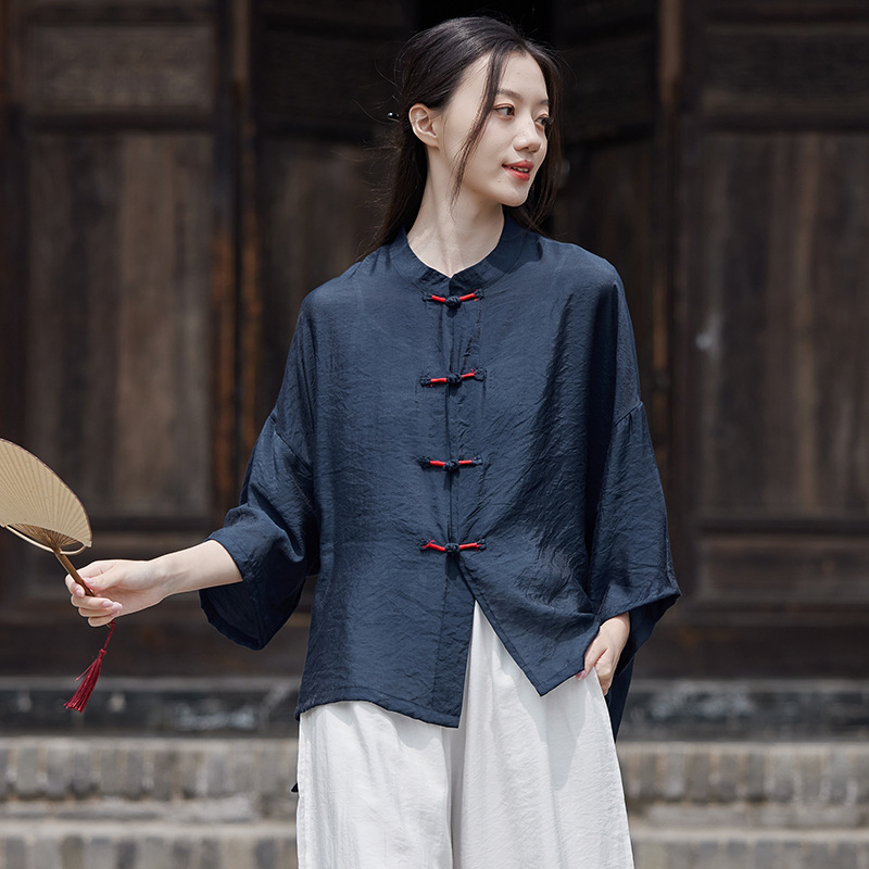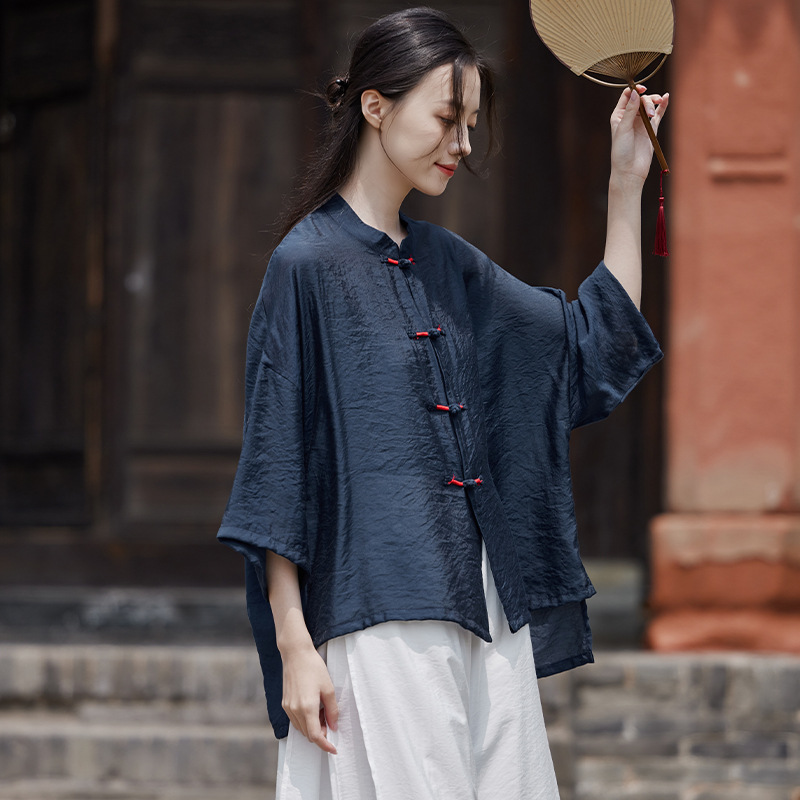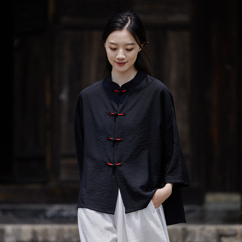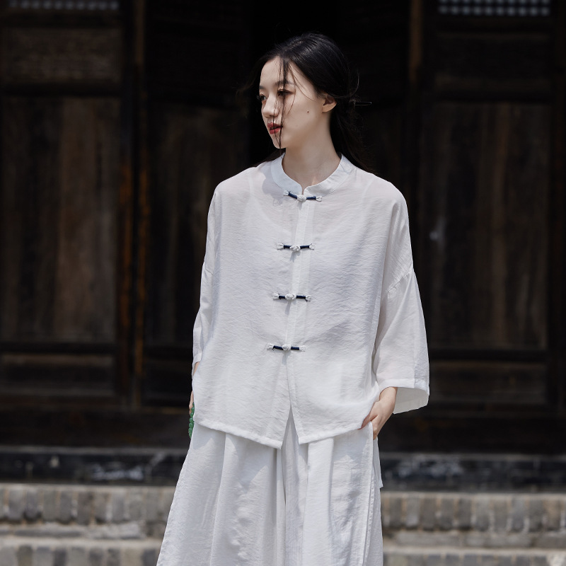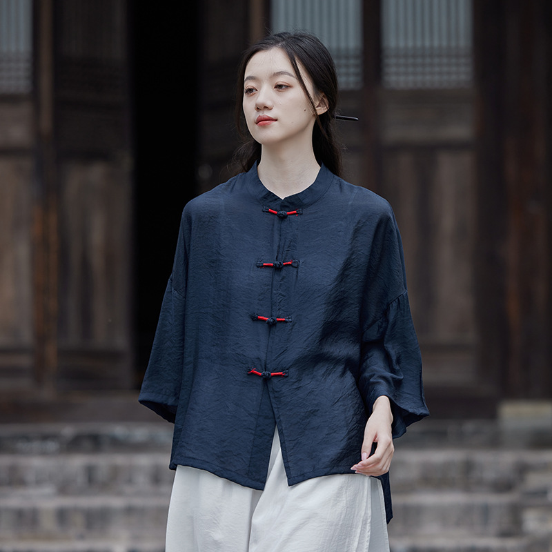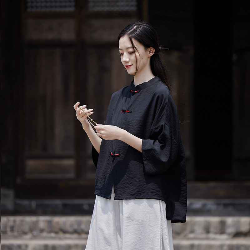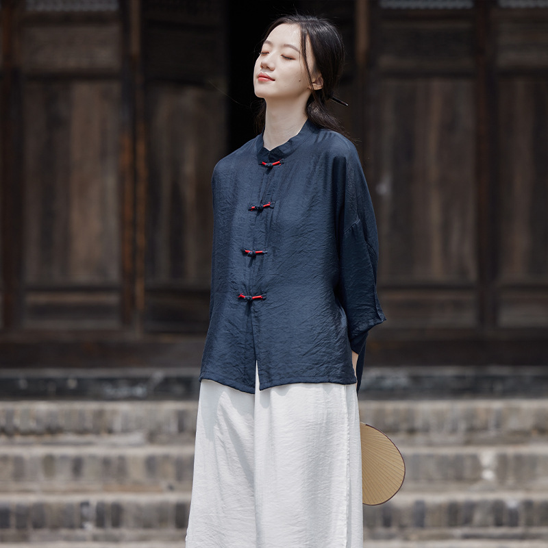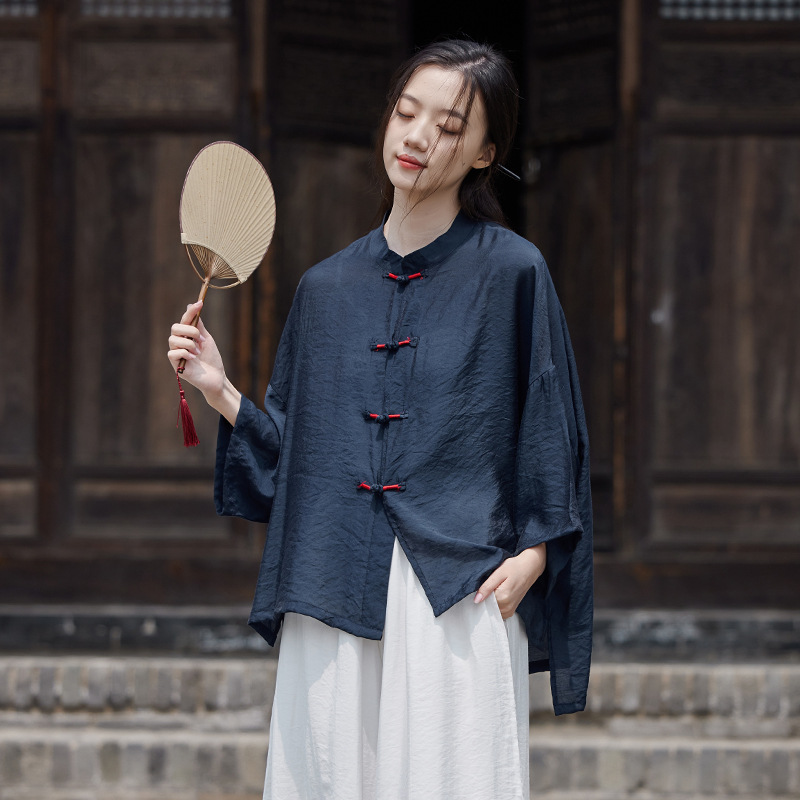 25 봄 가을 신상품 새로운 중국풍 레트로 단추 수제 봉제 셔츠 여성용 자외선 차단 얇은 에어컨 가디건스토어 가기