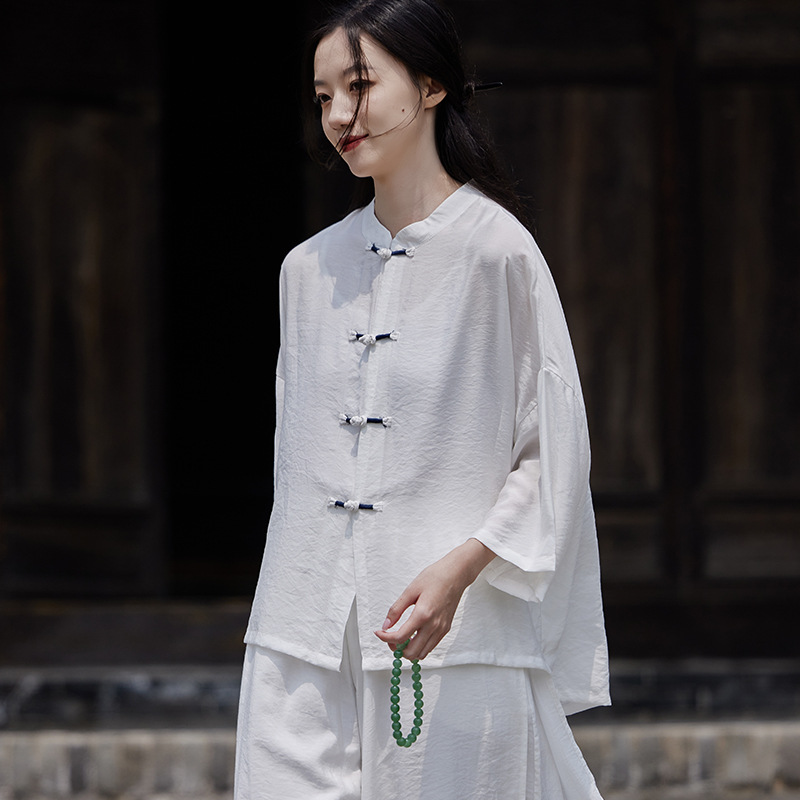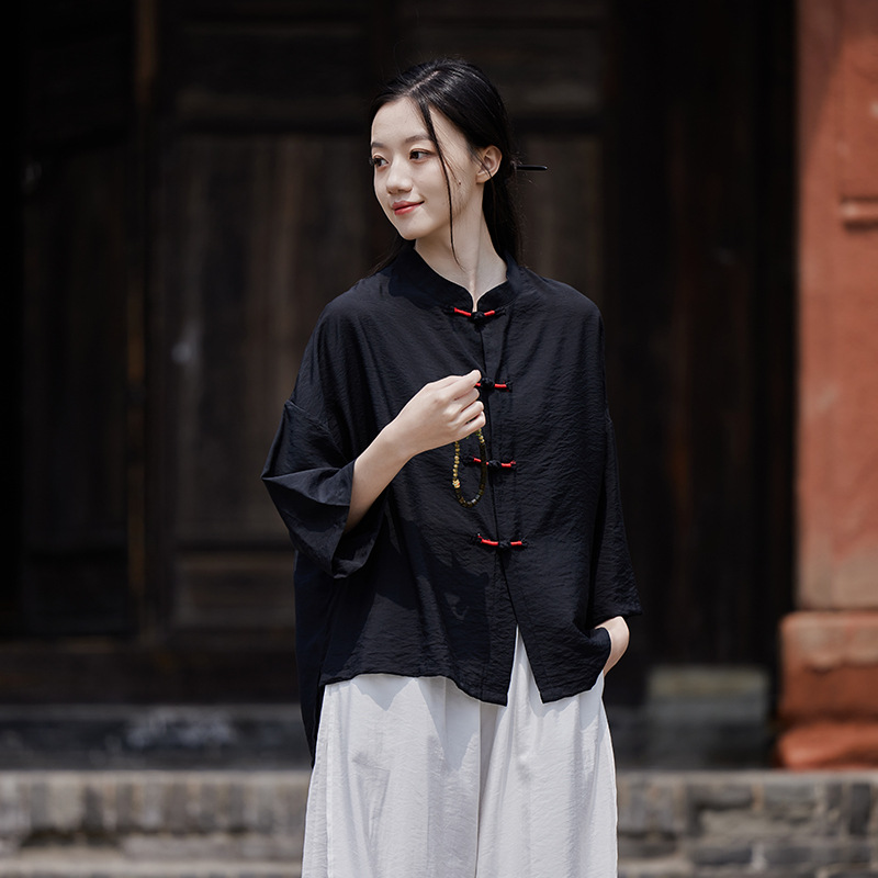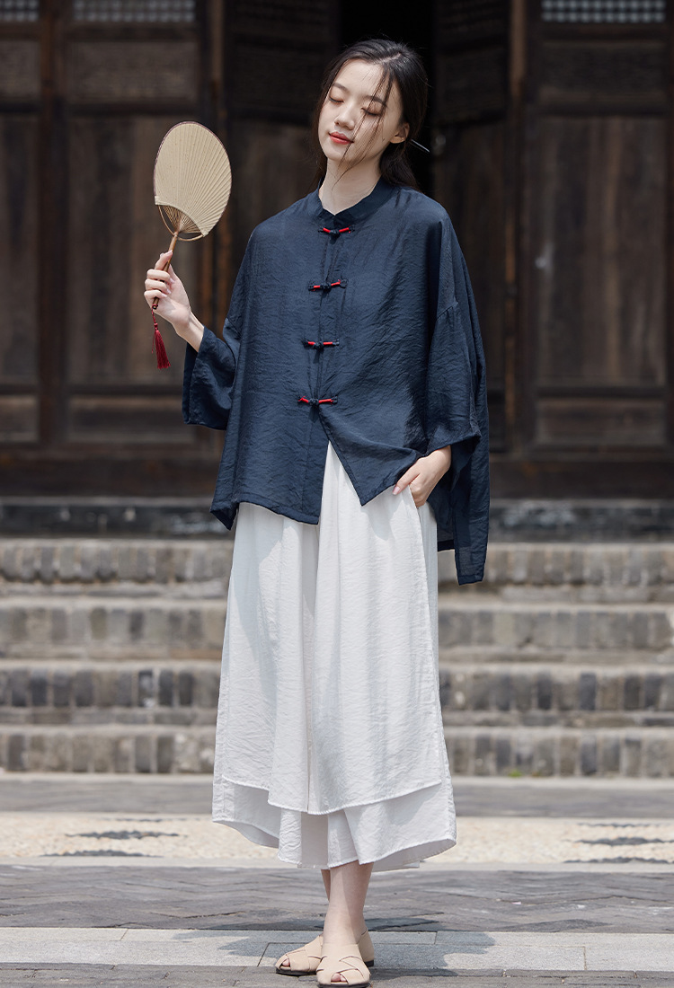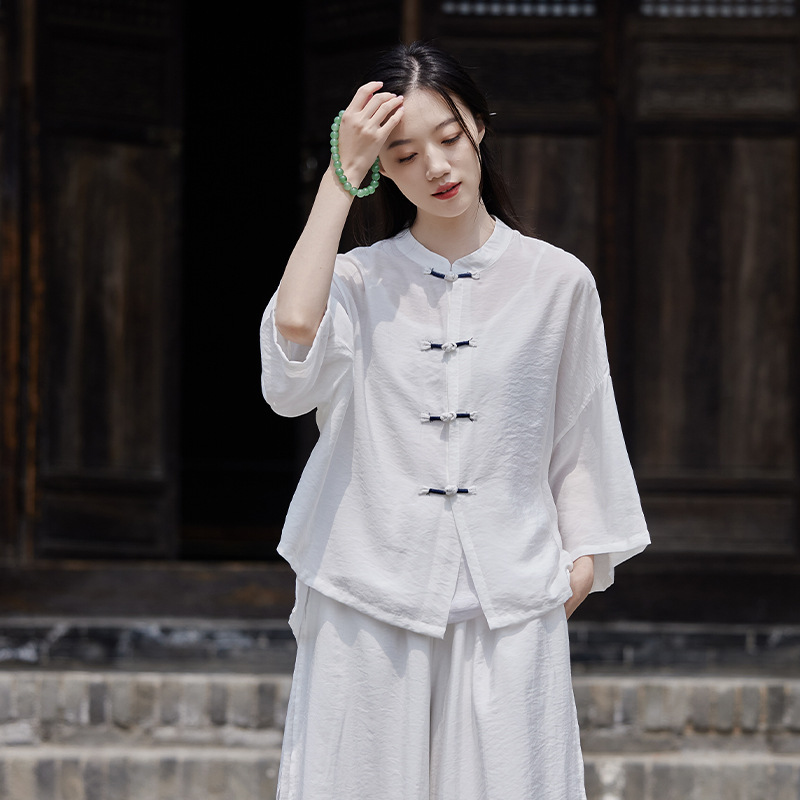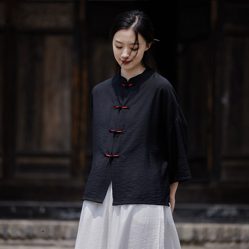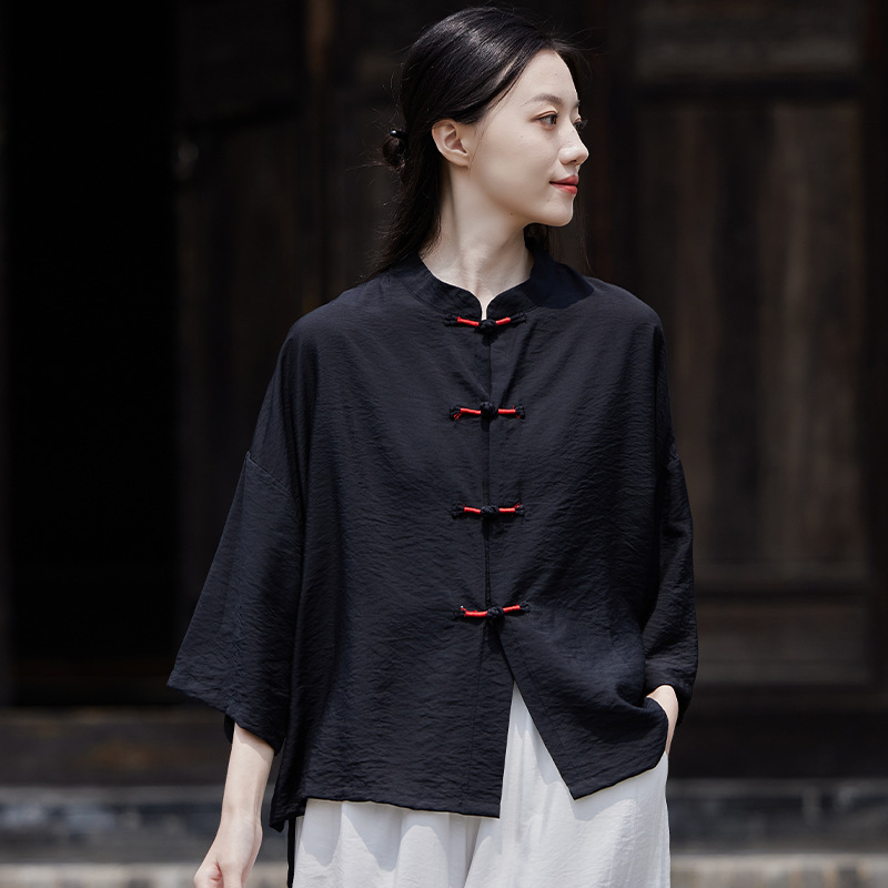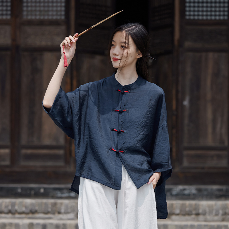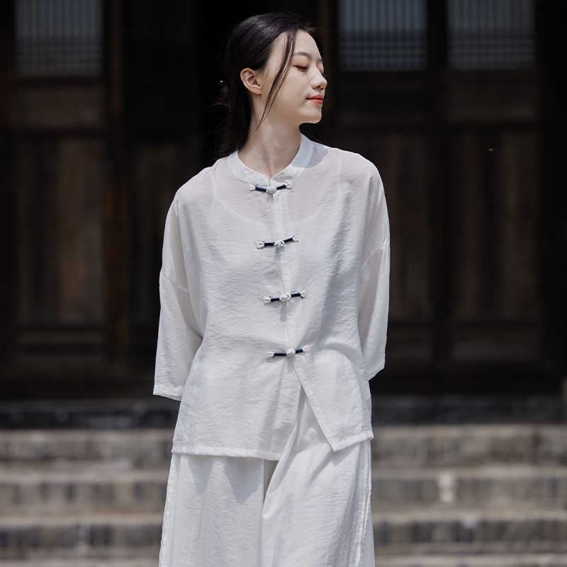 25 봄 가을 신상품 새로운 중국풍 레트로 단추 수제 봉제 셔츠 여성용 자외선 차단 얇은 에어컨 가디건스토어 가기